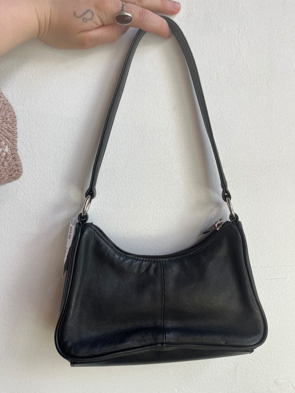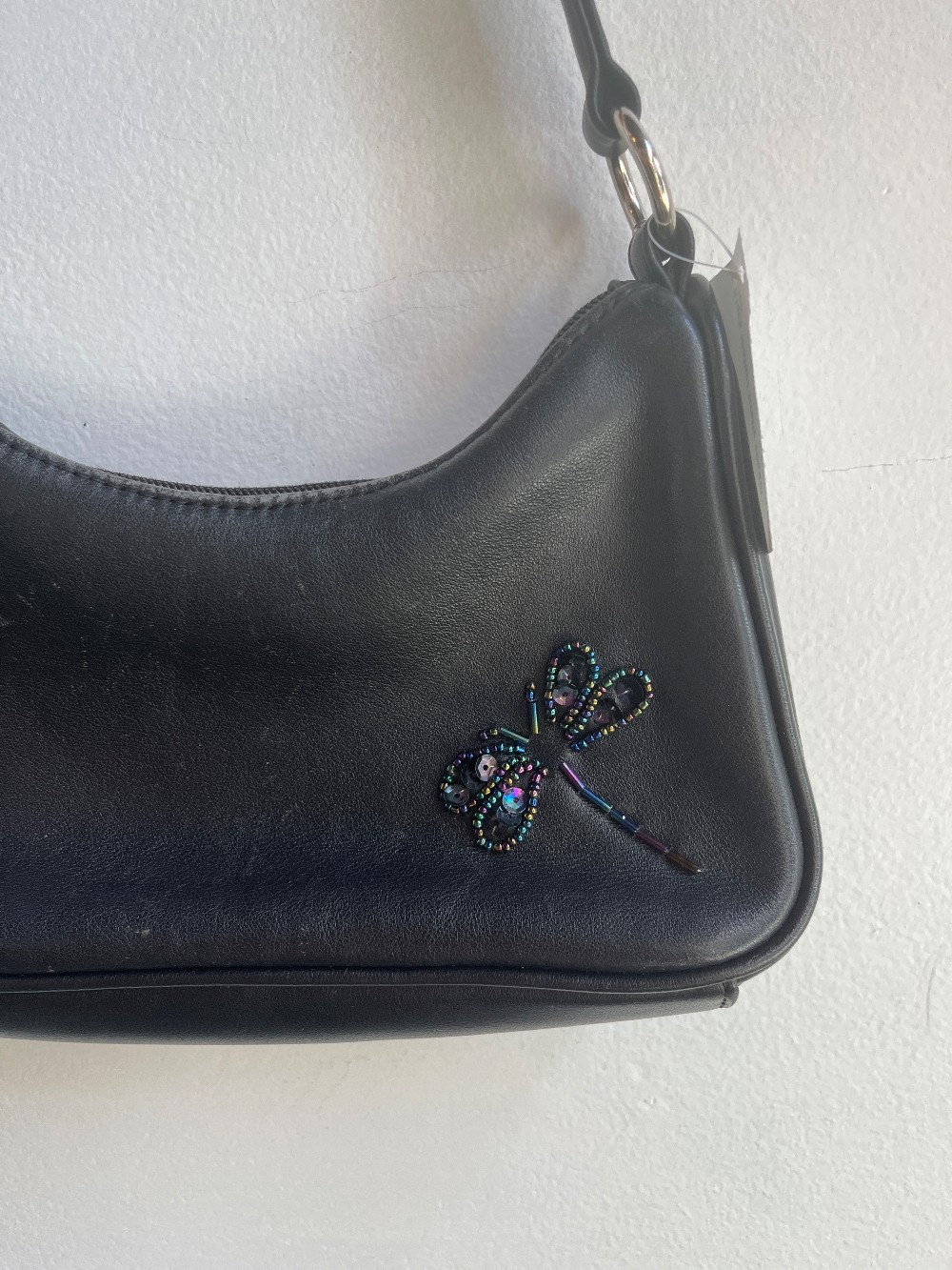 Multicoloured beaded fire fly along the front! Features black soft leather, a zip top closure, and black inner lining.