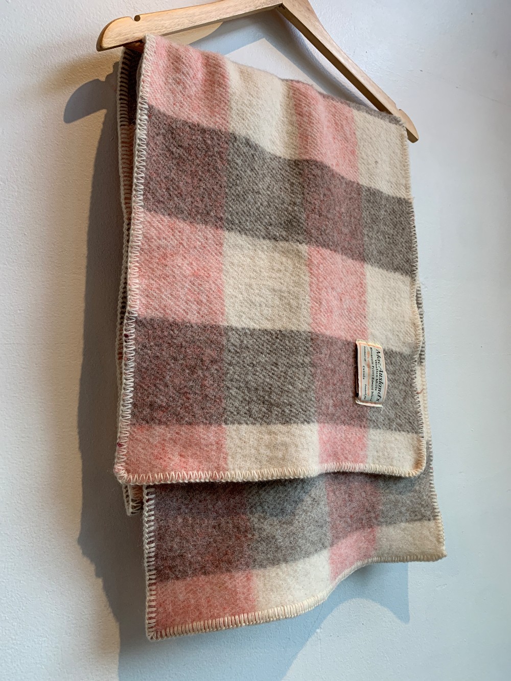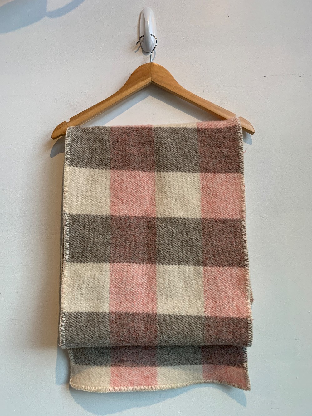 Great gift idea! A lovely pink check scarf made in PEI from woven material. Outer is stitched. Used as a thick scarf or light blanket.