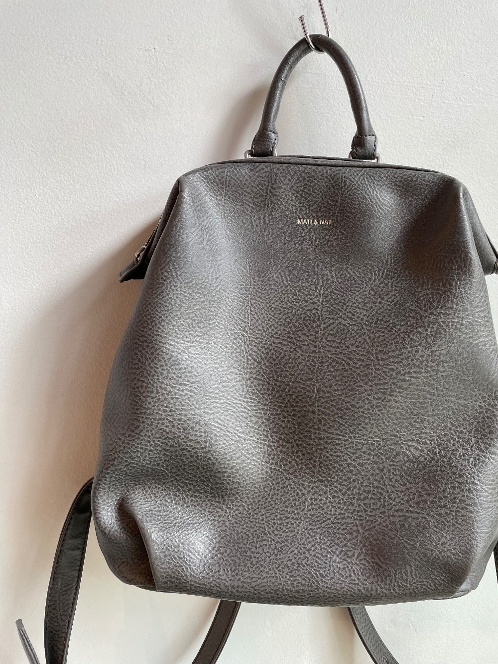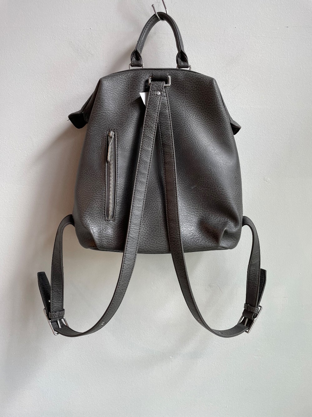 Backpack with top frame zipper closure with adjustable straps. Small zipper pocket on back for security. Interior: Zipper pocket, smartphone pocket, logo-embossed Dwell patch. Dimensions: 12.5”L x 13”H x 5”D Handle Drop: 3.5” Adjustable Back Straps: 27”-34”