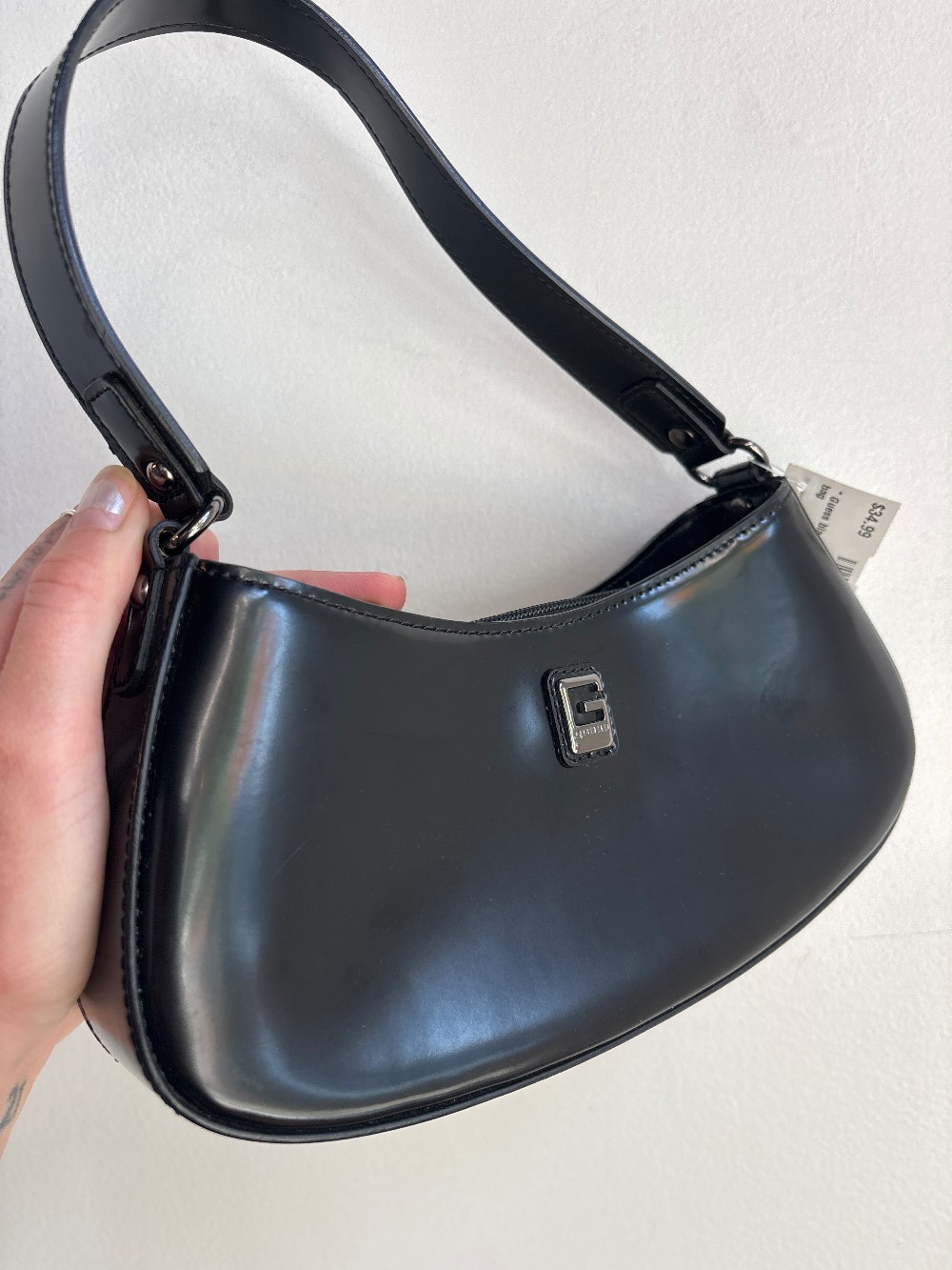 Beautiful black baguette bag, vintage. Elegant and trendy, this bag is a timeless piece in your wardrobe.