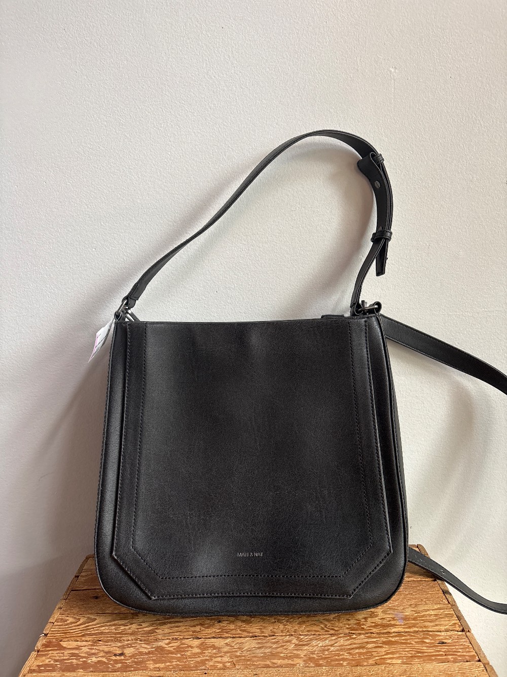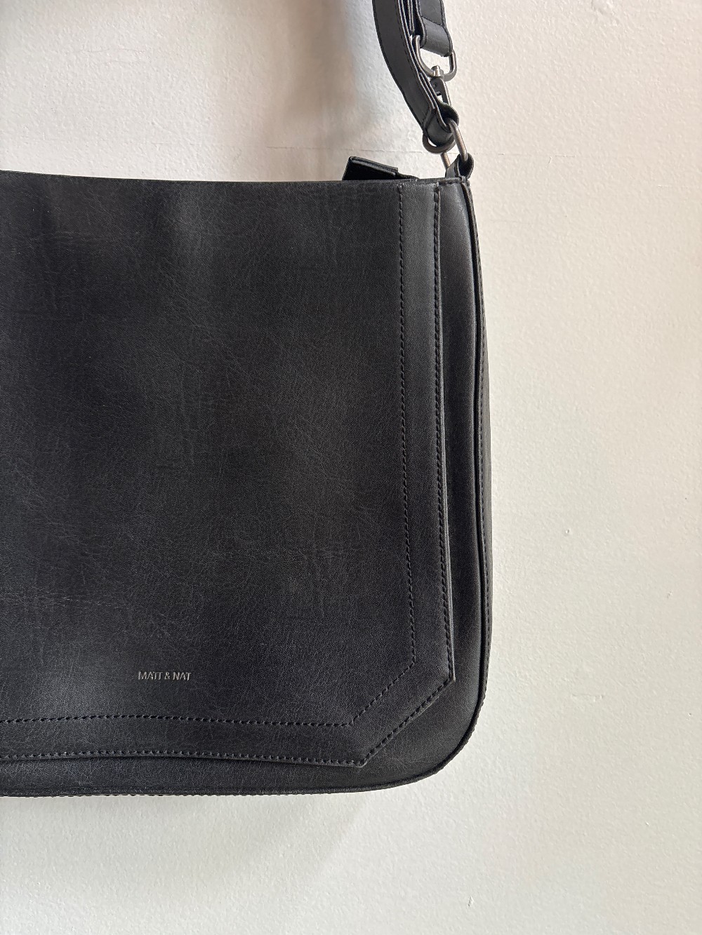 In great condition! Hobo bag with dropped metal zipper closure and heavy stitch angled front body detail slip pocket function. Comes with adjustable/removable crossbody strap and standard patch logo and cell phone slip pocket detail interior, zip pocket compartment on back wall of interior. DIMENSIONS: 11½” H x 12 ½ ” L x 3 ¾ ” W