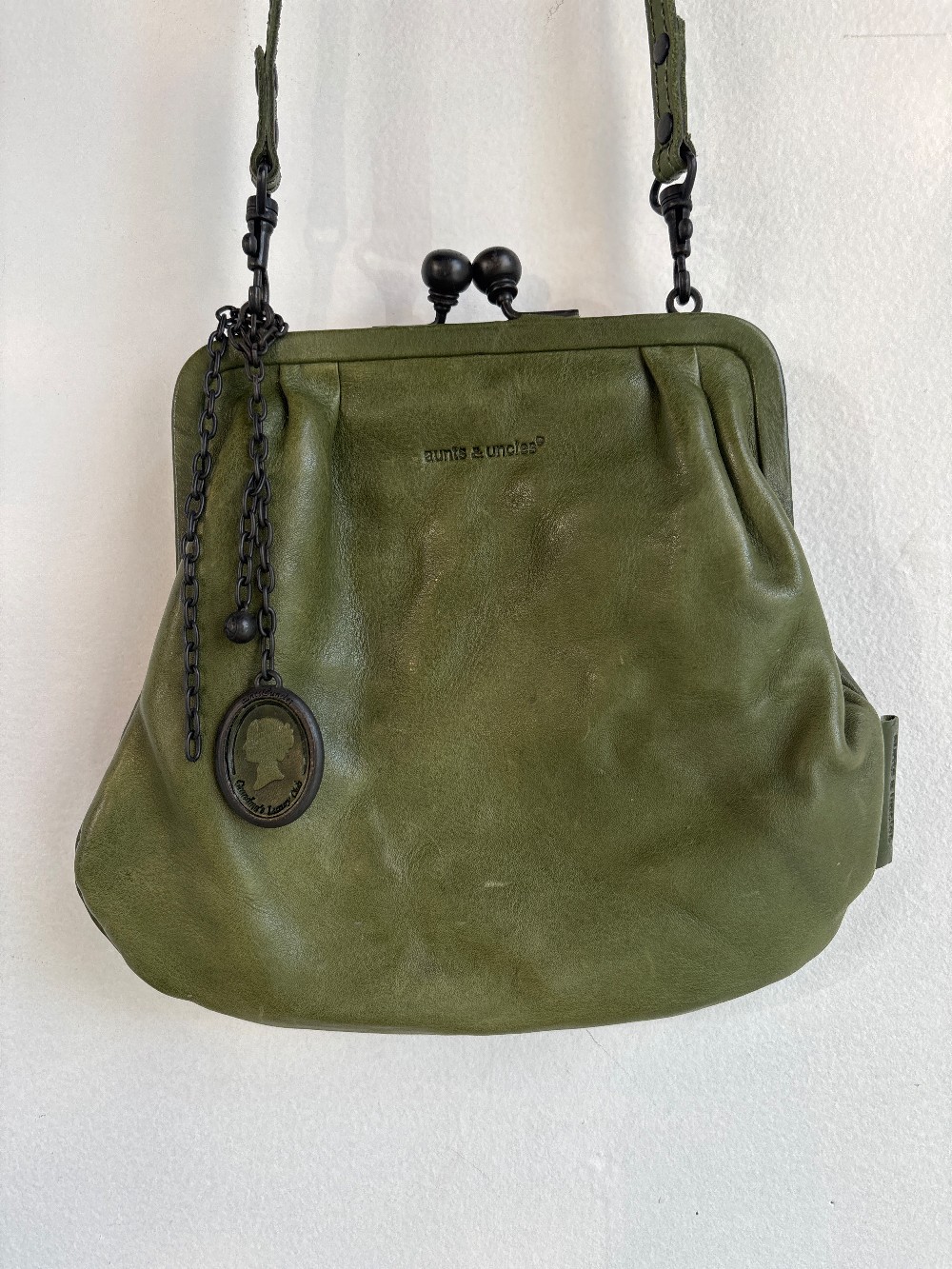 Mrs. Fortune Cookie is a real winner, made of highly vegetable-tanned premium cowhide with the crinkled look characteristic of Grandma's Luxury Club. The crossbody bag with the charming clip opening can also be worn as a cool clutch without the strap and comes with a well thought-out interior, a removable extra pocket and a link chain with a vintage pendant.