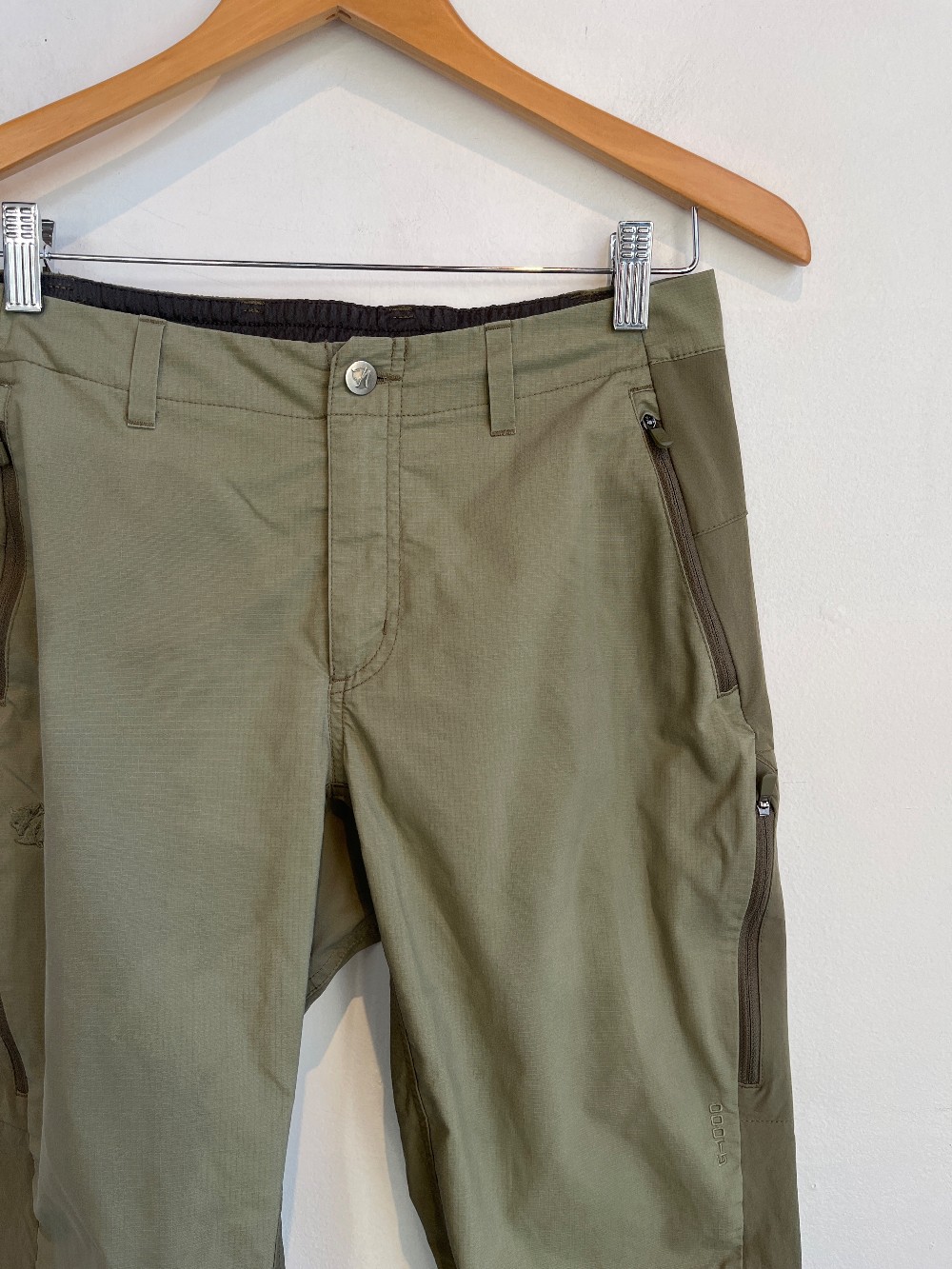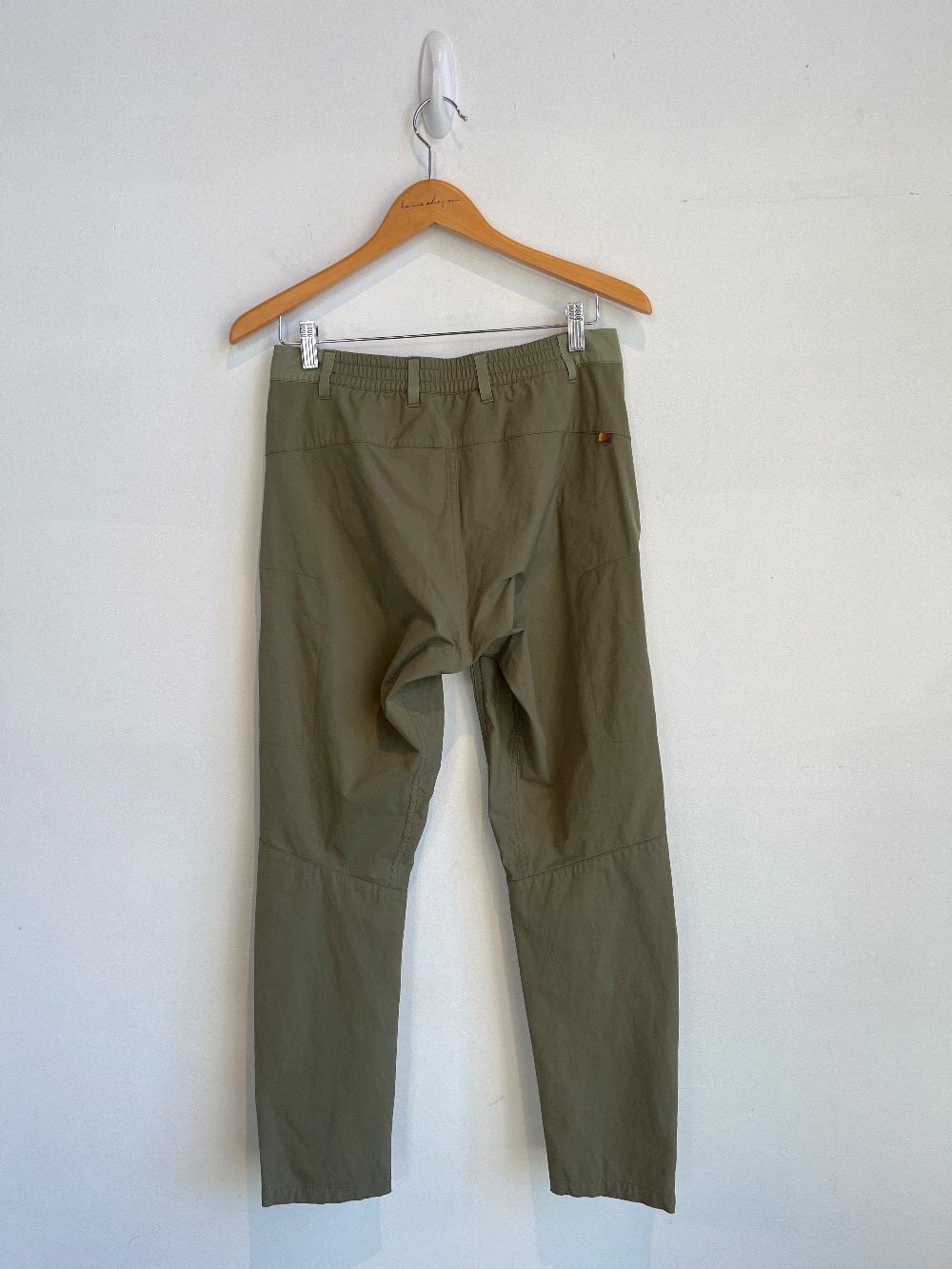 Valued at $210! Versatile, comfortable trousers in G-1000 Lite Eco Stretch that can be waxed for enhanced wind- and water-resistance. Optimized for bike riding with a hybrid waist—the built-up waistband has no front seam for more comfort on longer bike rides. Elastic waistband at the back. The inside of the waistband is faced with mesh for comfort and the effective transport of moisture away from the skin. Secure zippered hand pockets and ventilating thigh pockets. Reflective details on the inside of hems, fold up the cuffs to expose them for more visibility. Regular tapered fit and articulated knees that are optimized for functionality and comfort, both on and off bike. Part of the Specialized/Fjällräven series for urban rides and bikepacking adventures.