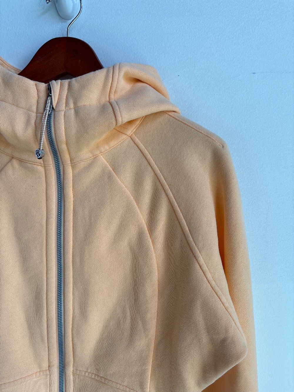 “Breathable, warm, and cozy. Naturally breathable, cotton-blend fleece fabric. Soft against skin. Lightweight warmth. Zipper garage keeps chafe in check. Elastic zipper pull doubles as an emergency hair tie. Thumbholes.”