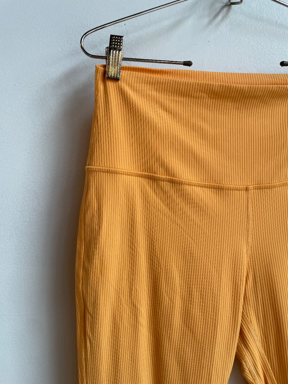 “Powered by Nulu™ fabric, this ribbed version of our lululemon Align™ pants feels weightless and buttery soft. Sweat-wicking. Quick-drying. Four-way stretch. Added Lycra® fibre for stretch and shape retention. Hidden waistband pocket.”