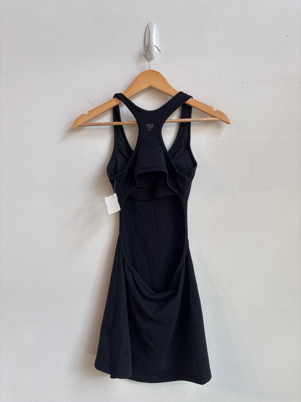 Black with cut out details on sides and around back. Light, form fitting, sleeveless and sporty!