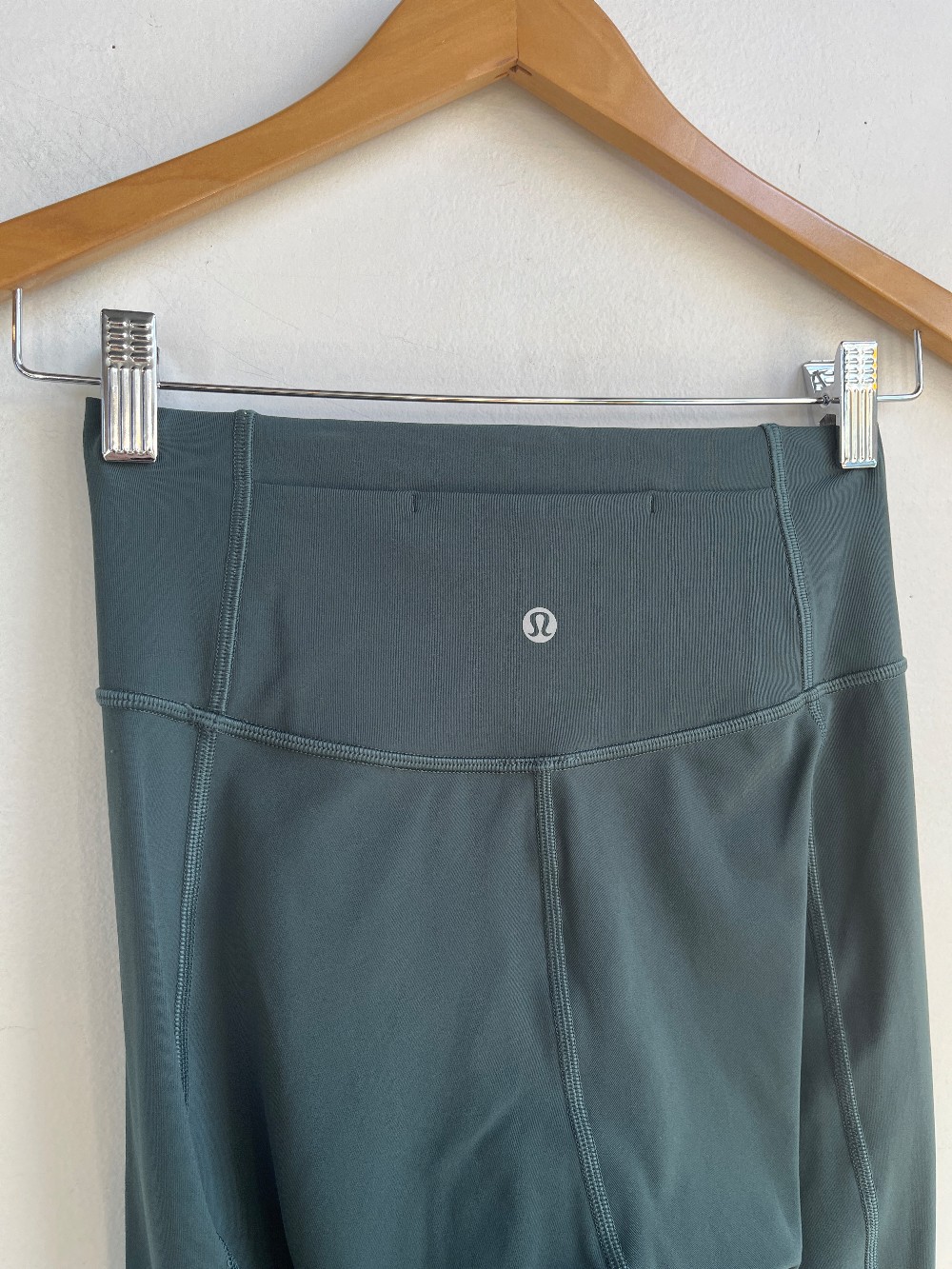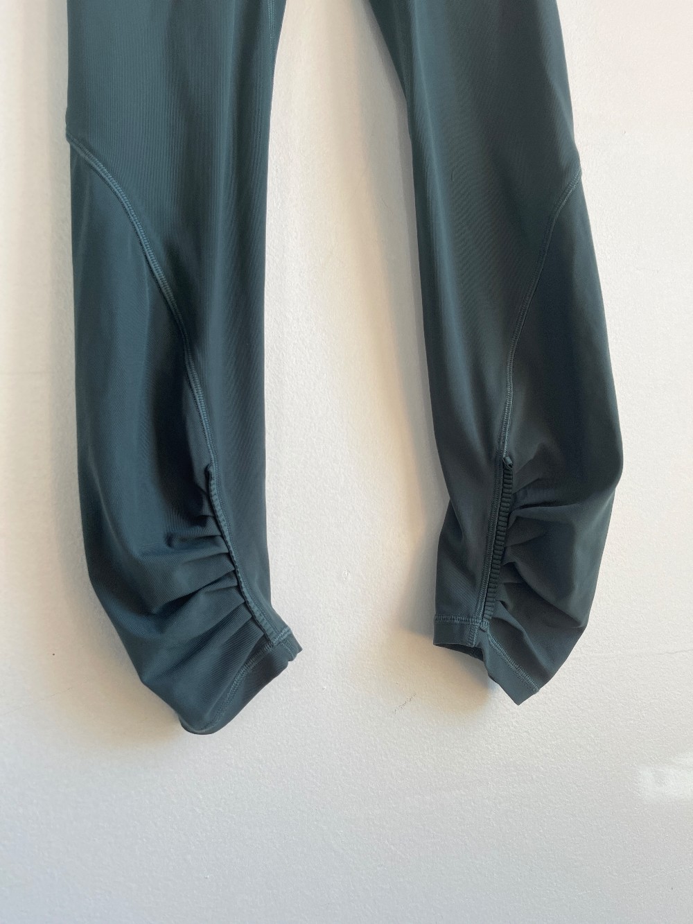 Classic high rise leggings with hidden back pocket, scrunch hem and is made from stretchy lycra/ elastane blend.