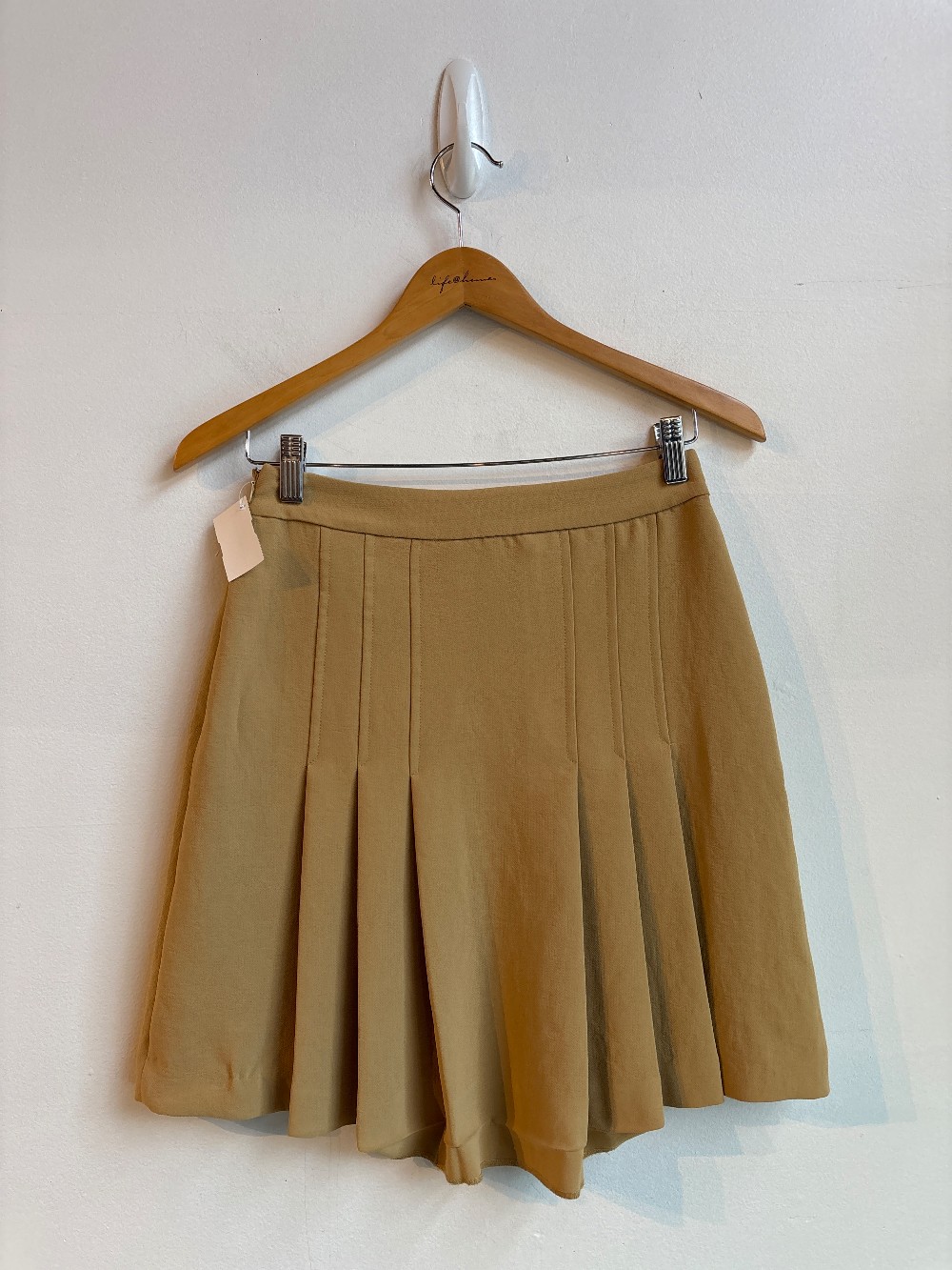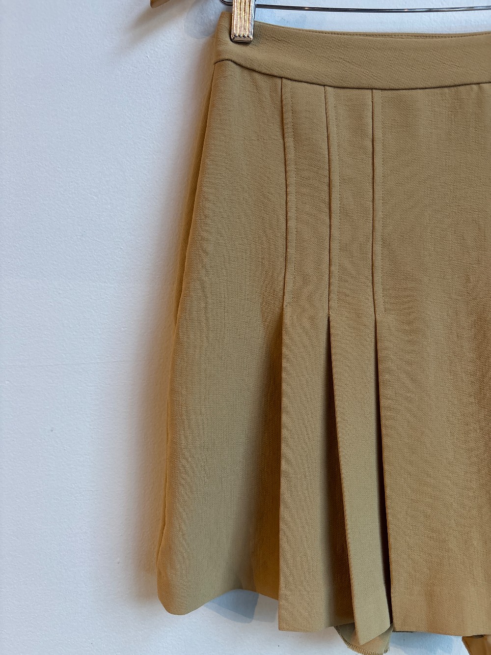 Off-duty duchess. This is a high-waisted pleated skirt with an invisible zipper. It’s made from Crepette — Wilfred’s iconic crepe fabric famous for its subtle texture and breezy, effortless drape. It’s sourced from a premier Japanese mill.