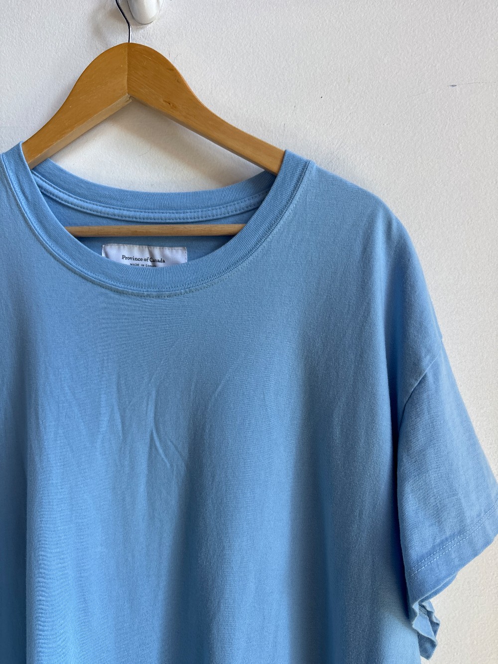 “We like to think we solved the ‘it’s hot and I just want to throw something on but look good’ problem we all face every summer (or travel season). The same comfy fabric and foundation as our tees, but in a simple short sleeve t-shirt dress. Made with thick 100% organic cotton, so it's cool but structured. A-line cut to create an oversized straight silhouette. Falls at just the right length, and did we mention pockets? Made in Canada. 100% GOTS certified organic 9oz cotton, knitted locally. Slight A-line. Inseam pockets on Hip. Flag Label above Hem.“