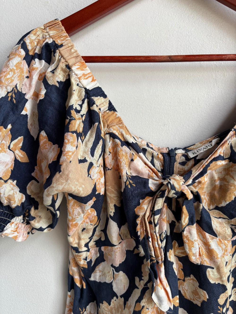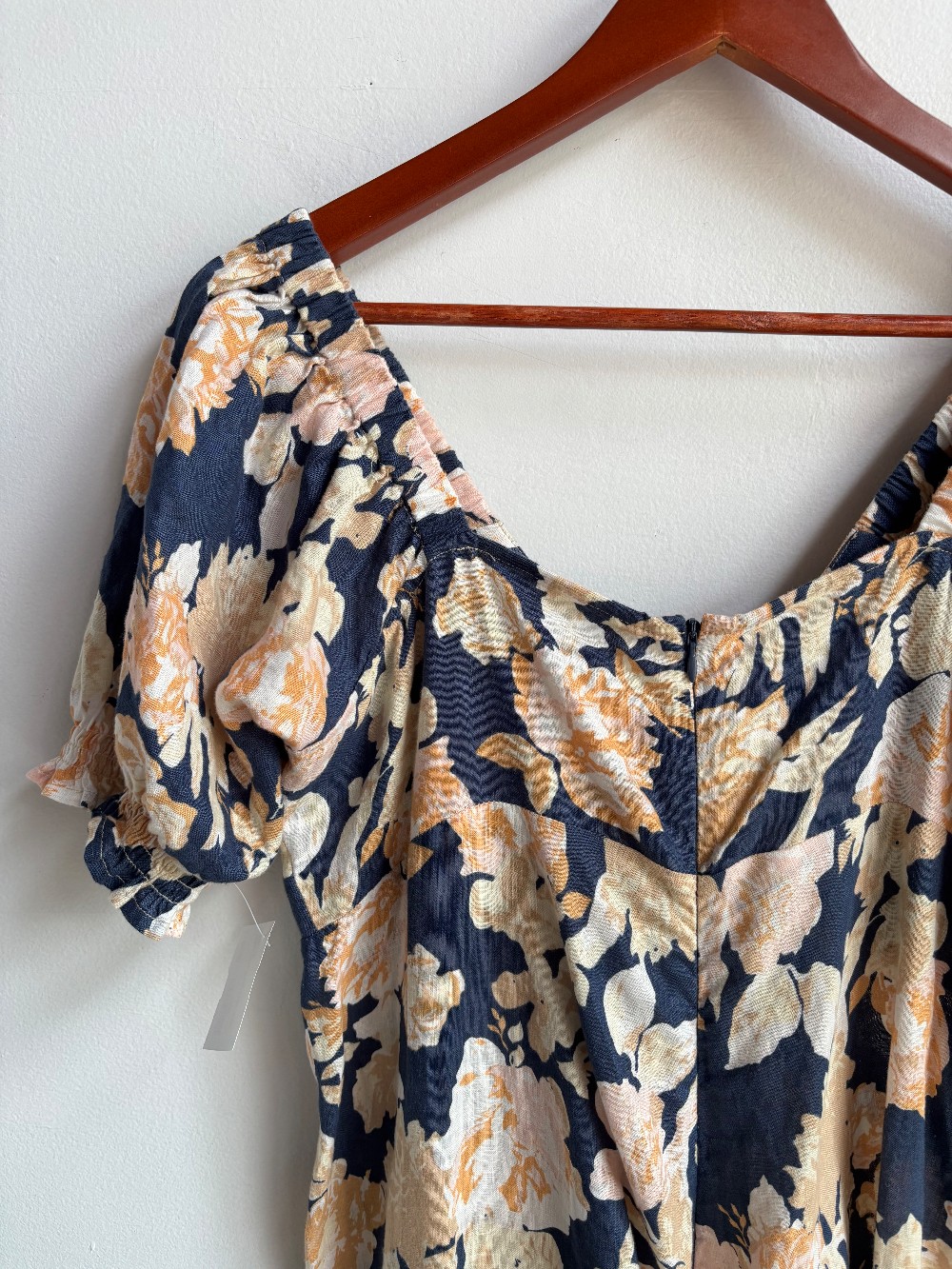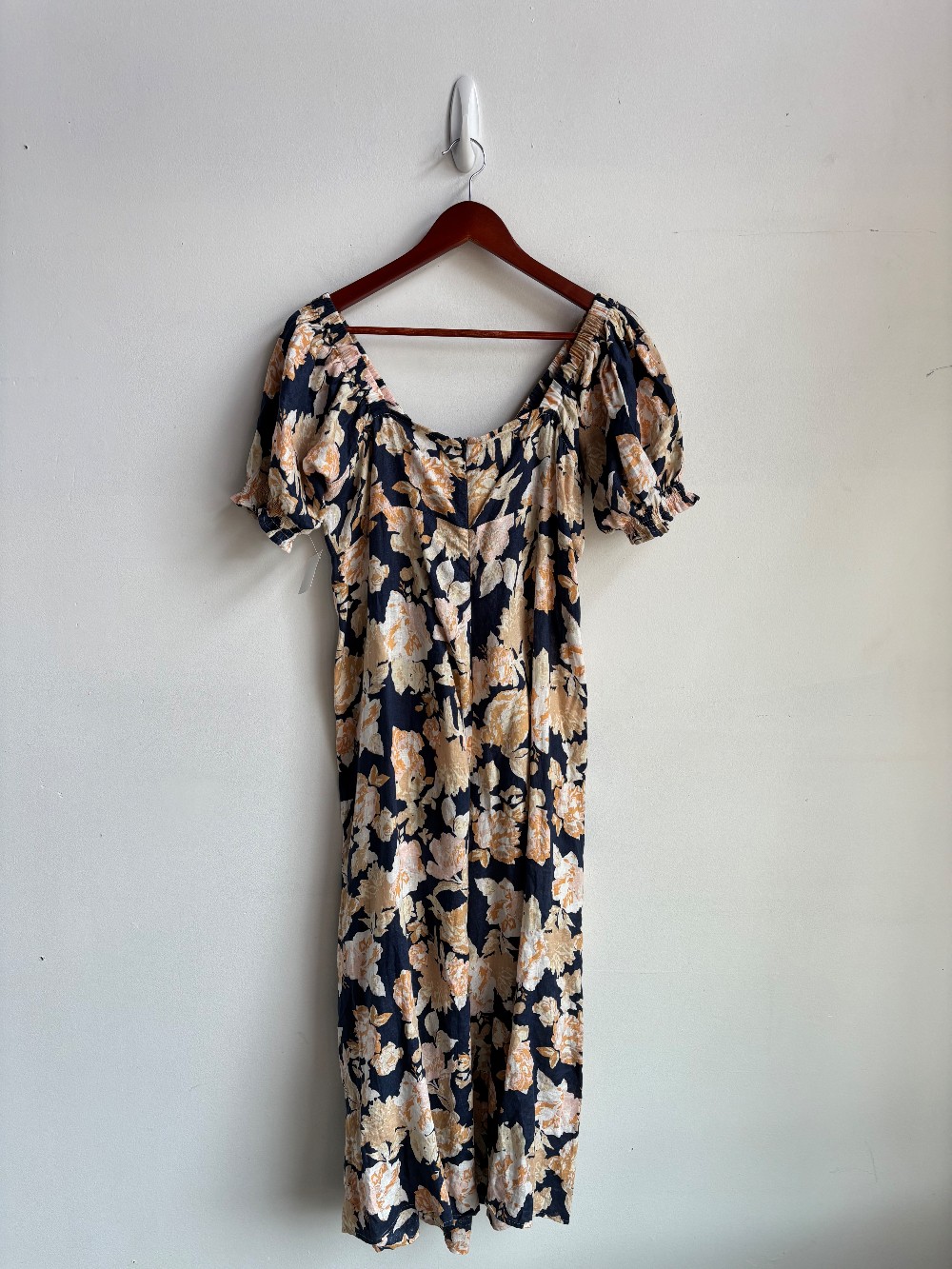 A designer dress worth approx $450 CAD! Gorgeous maxi dress with a floral print, short puff sleeves, tie front bust and back zip closure. Material is 100% linen.