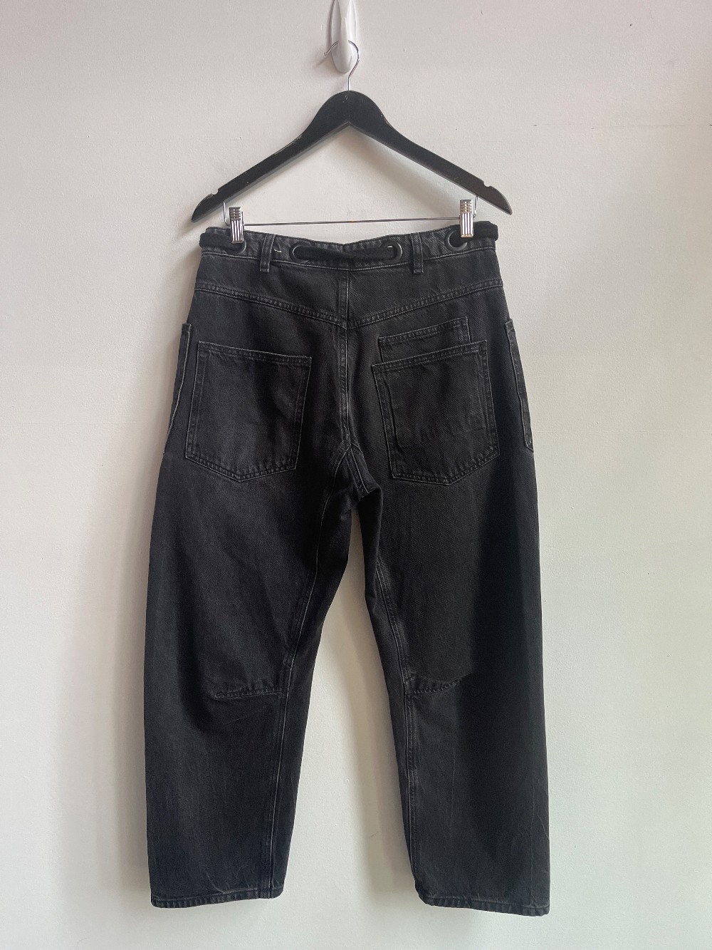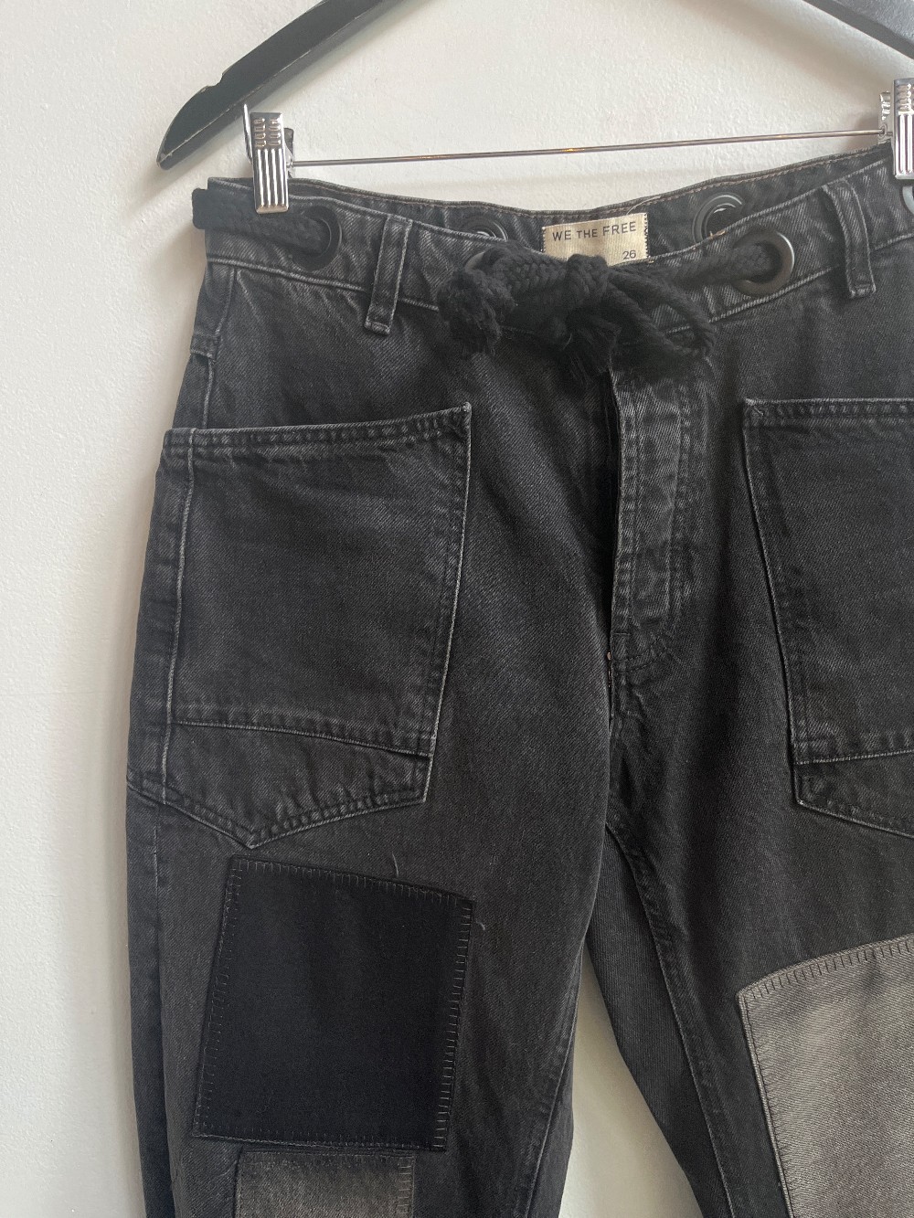 “The perfect cool & contemporary addition to any denim drawer. Fit: Low-slung, slouchy fit with tapered silhouette. Features: Distressed detailing throughout, paint splatter features, oversized patch pockets, contrast drawstring waist, pull-on style.”