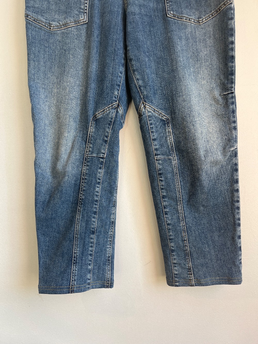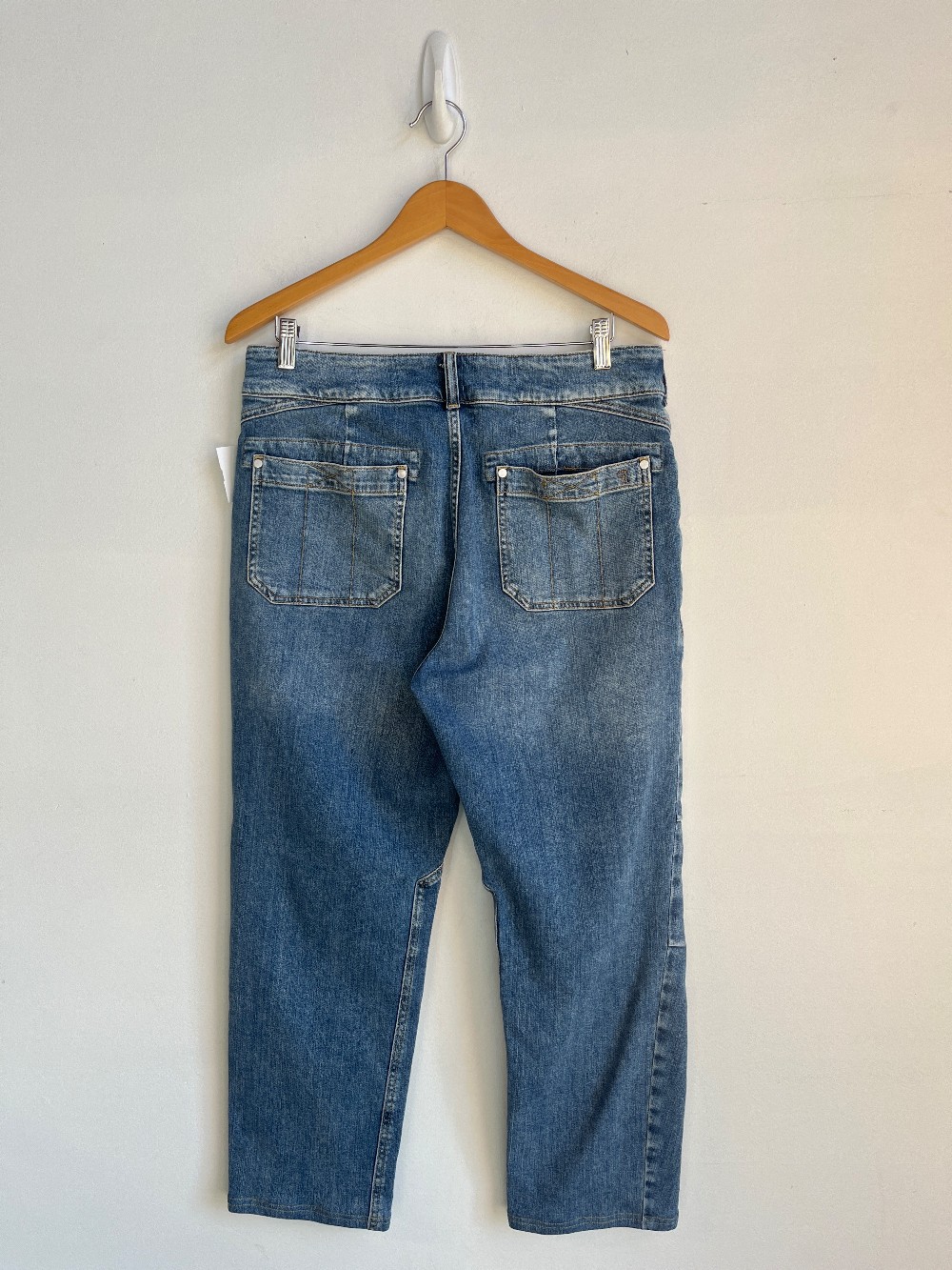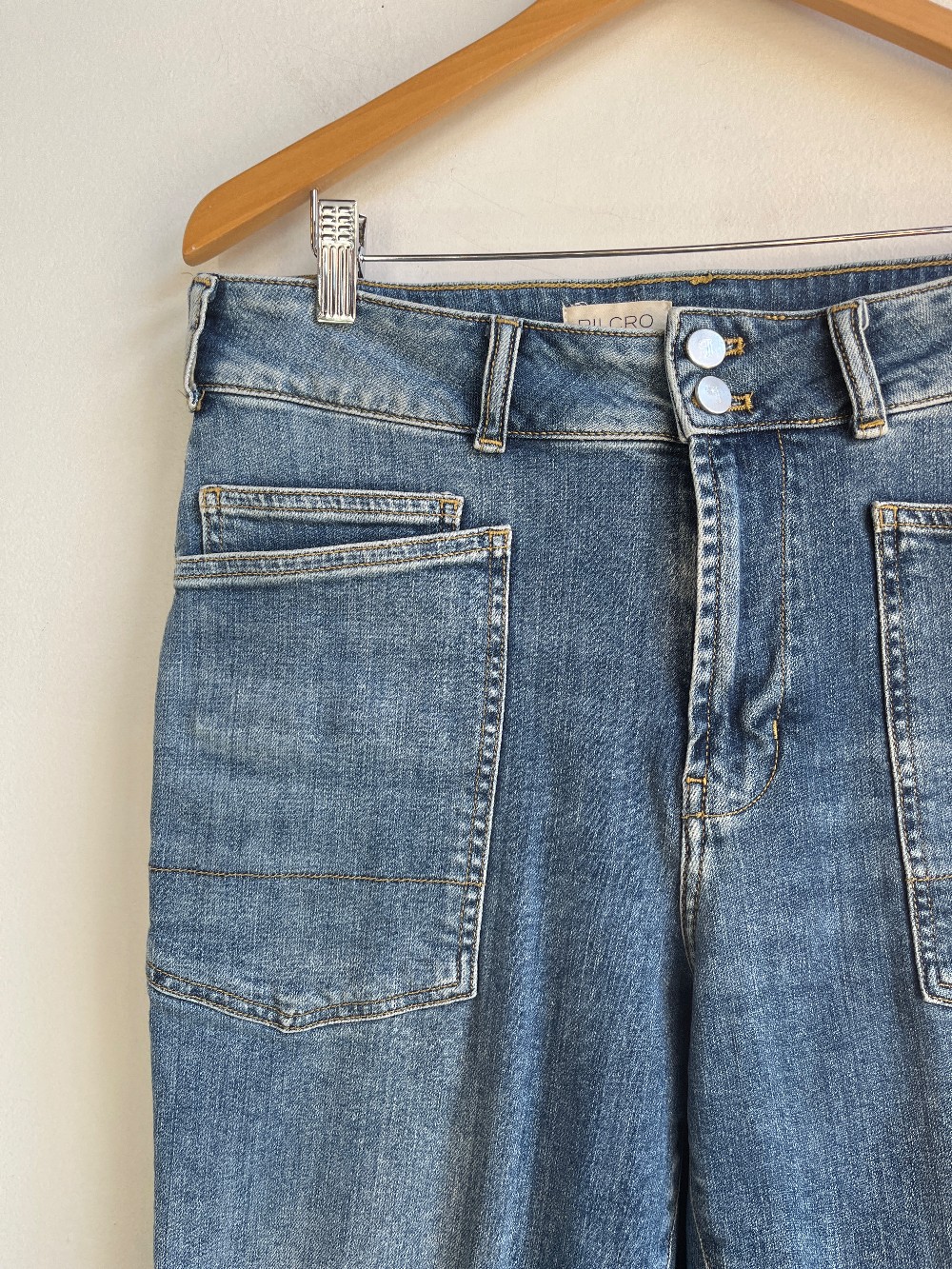 High rise, multi pocket jeans, cropped, zip fly