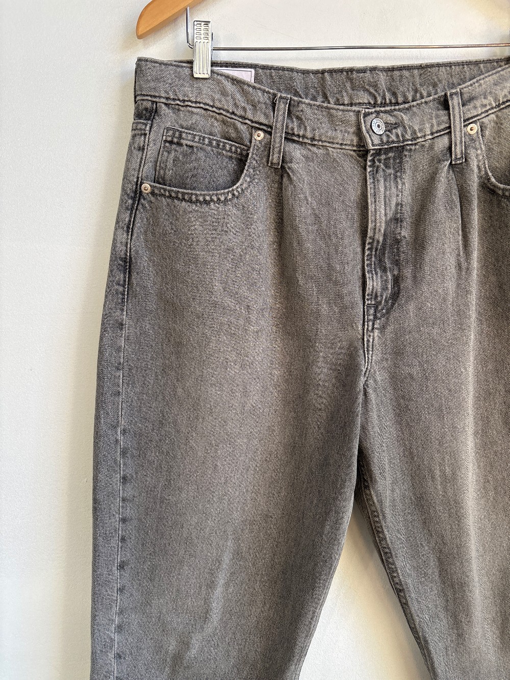 Mid rise, barrel leg, tapered ankle, pockets, belt loops