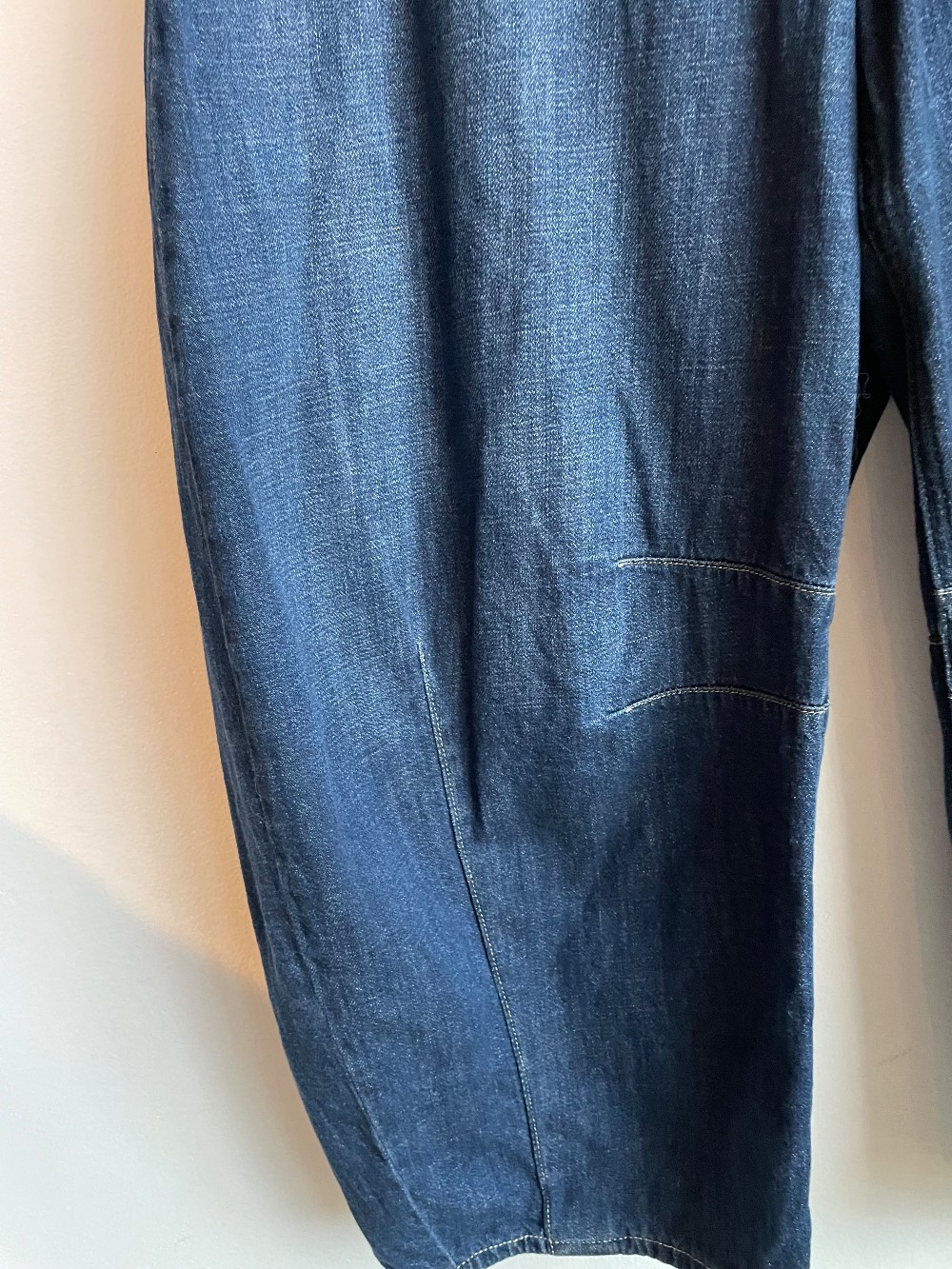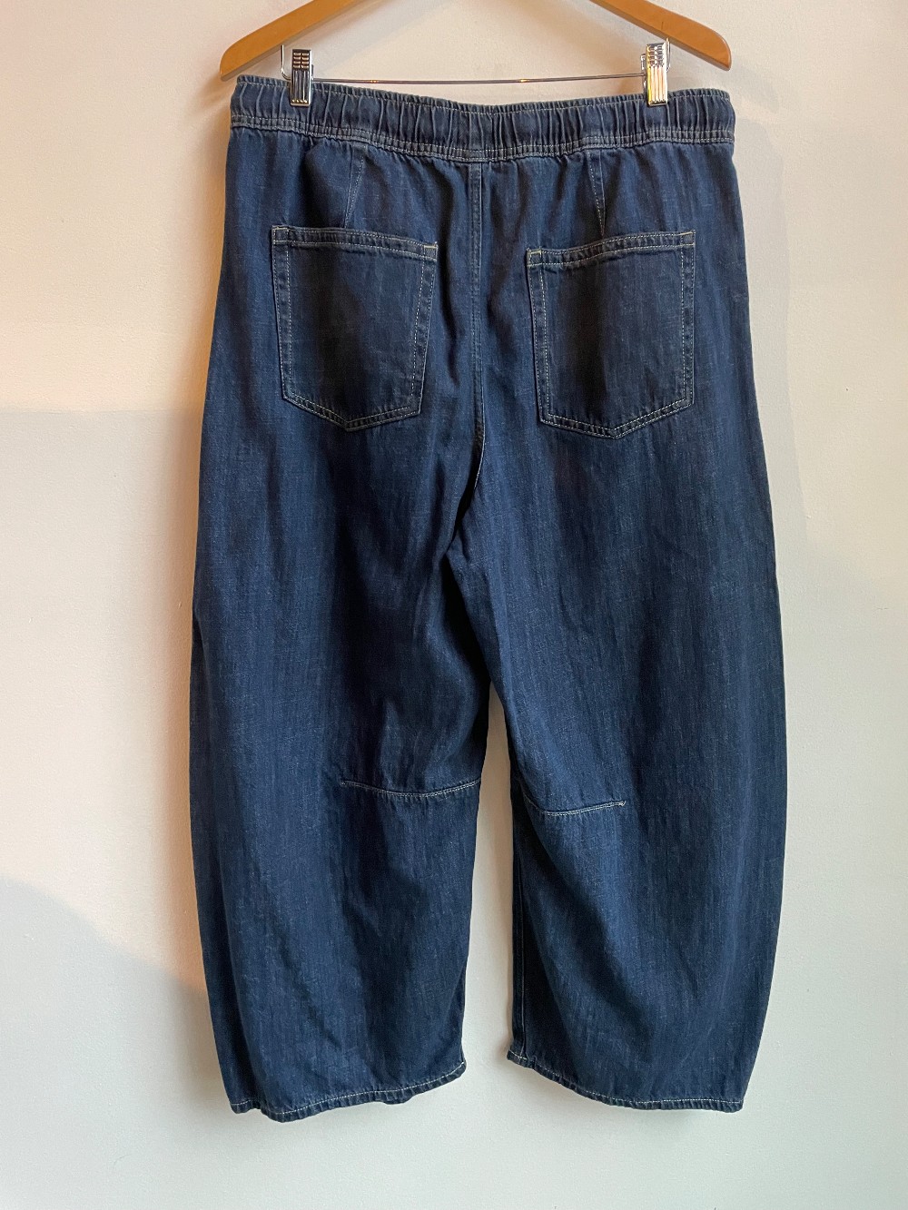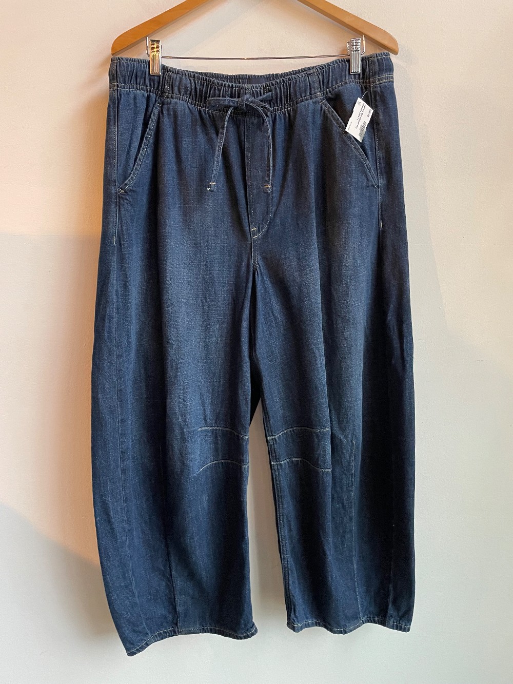 ” An exaggerated curve. An extra loose leg. A barrel fit goes extra wide — and becomes completely new. Fit: An ankle-length horseshoe jean that's fitted at the waist with an exaggerated curved leg and tapered ankle. Fabric: 95% Cotton, 5% Recycled Cotton. Stretch: No Stretch Jeans. Authentic denim that gets better with every wear. Made to wear all day & break in over time. Rise: Mid Rise Jeans. Look: A horseshoe jean in a dark indigo wash. Details: Elasticized waist with drawcords, four-pocket styling & seams at sides. Responsibly Made: This pair of jeans is part of our water-saving Washwell program. Compared with conventional wash methods, Washwell uses at least 20% less water and has saved over a billion liters of water since 2016.“