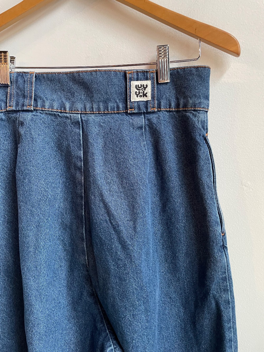 Addison is our high waist trousers with elasticated back and full length leg. Referred to as “magic trousers” by those with big hips and without Available here in Light Wash Blue Denim! Our Fit High waisted with a wide waistband to sit over the waist, extra ease with elasticated side panels