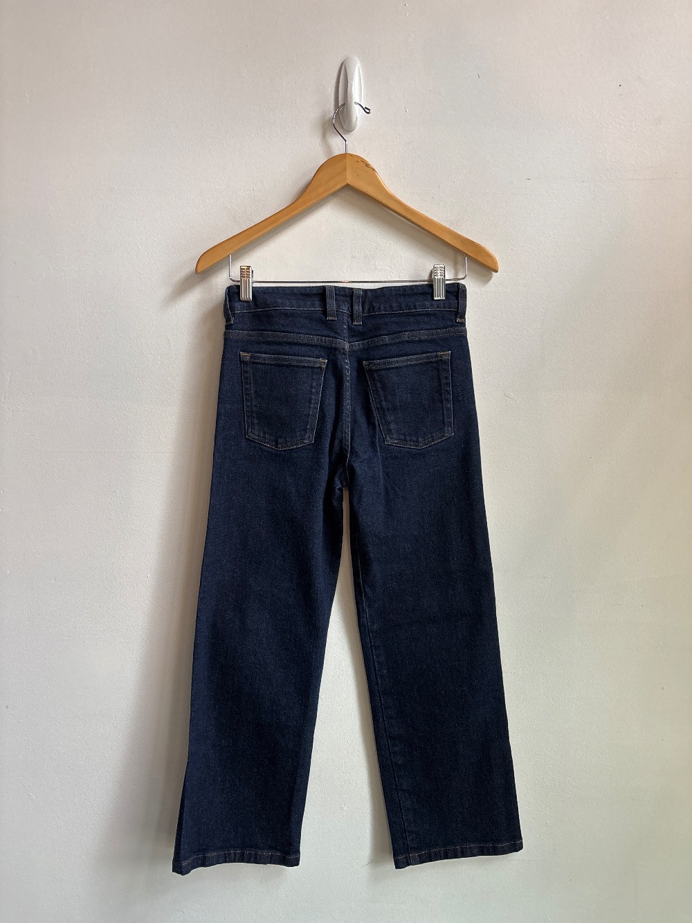 Designer brand name ! The Wide Leg Jeans have a relaxed wide fit, with a mid-rise waist and extra long length. Made from an organic cotton and viscose blend denim with a touch of stretch. Wear them with a casual knit and sneakers, or dress them up with heeled boots