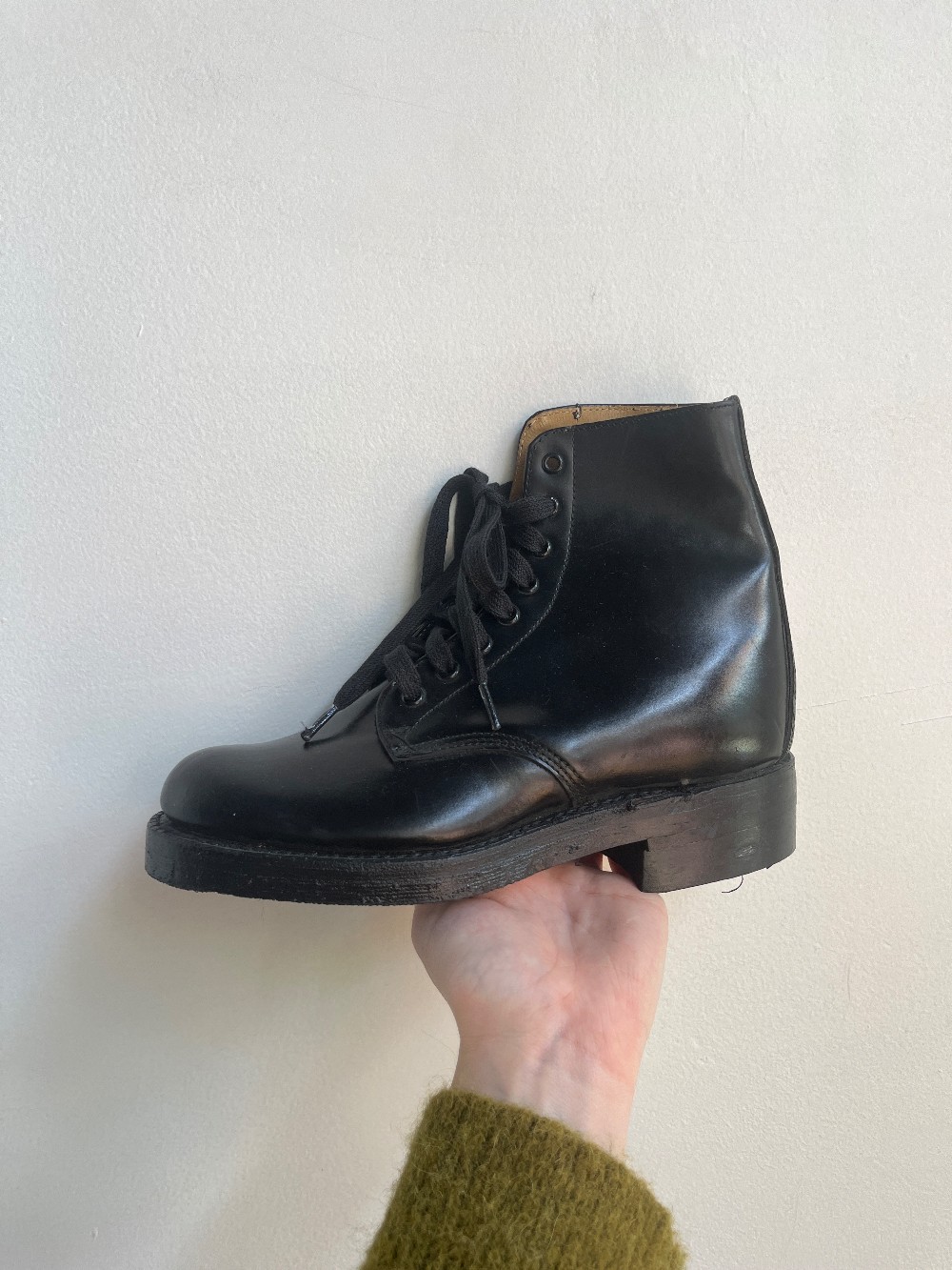 Sizing is an estimate! Best to try on in person. Vintage deadstock black lace up military boots. New condition, seems never worn! Made in Canada for Canadian army.