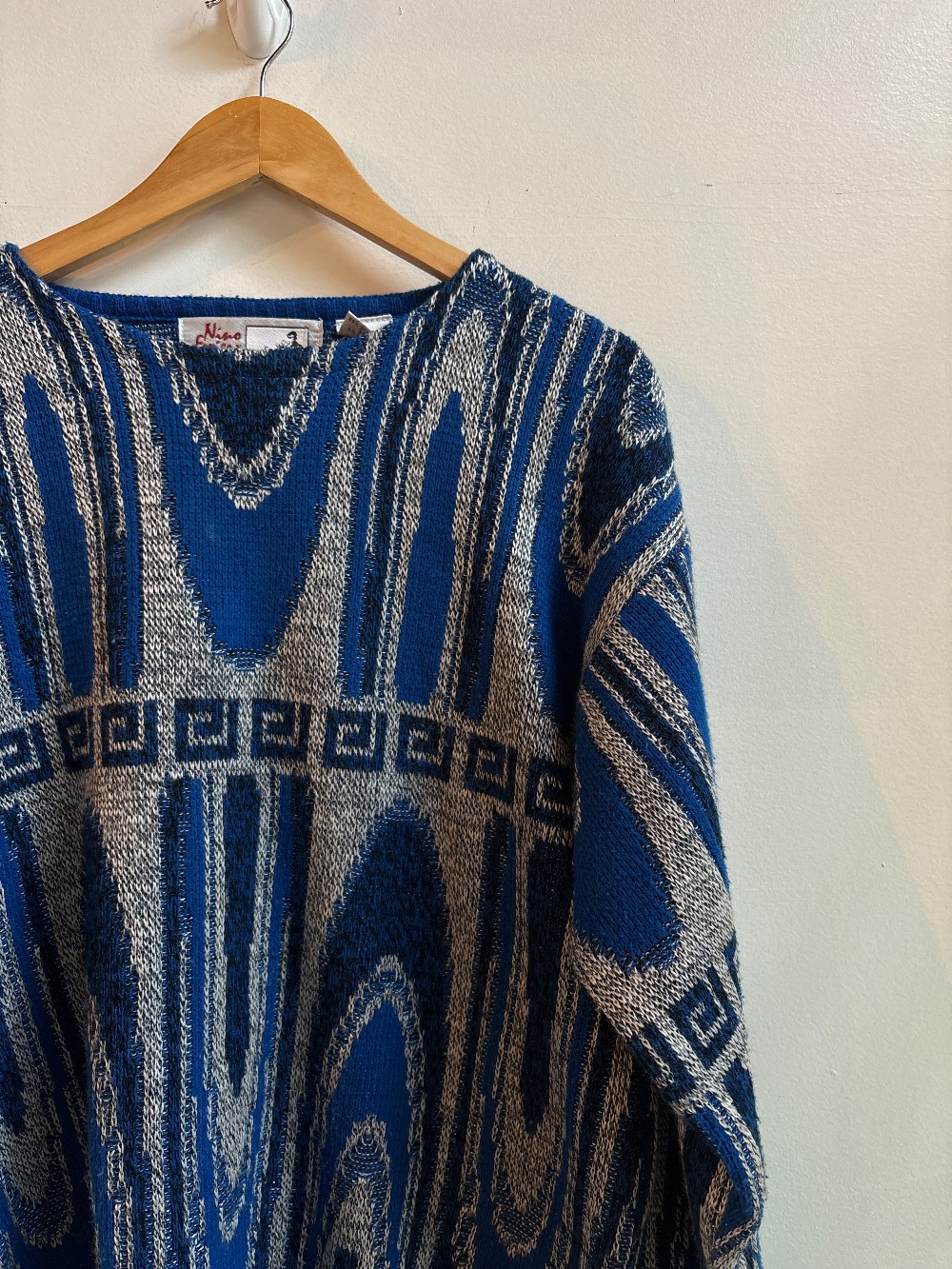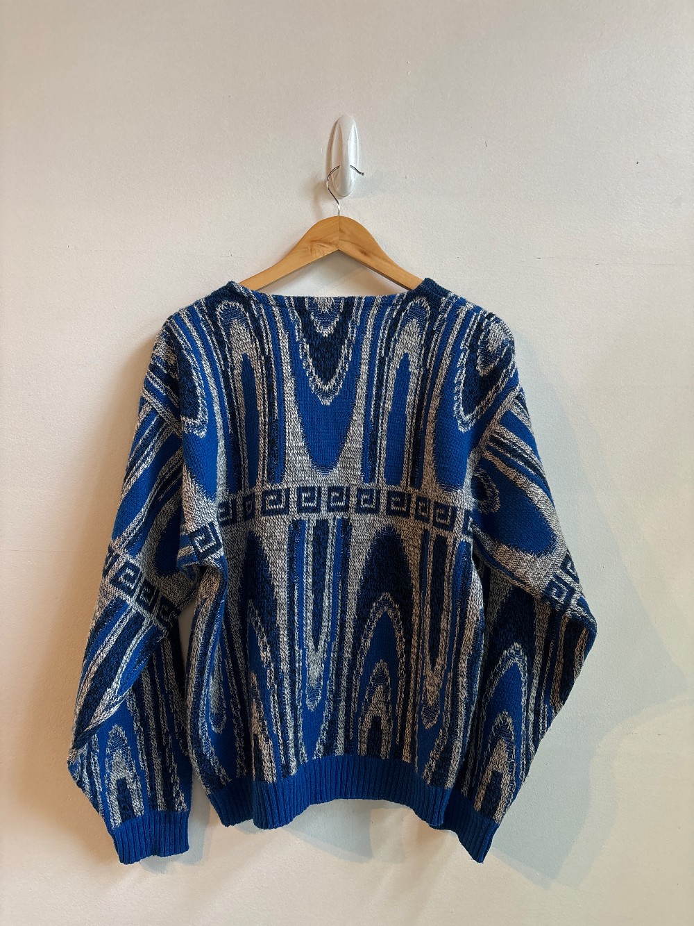 Mens Sizing! Super cool, vibrant patterned knit sweater with a relaxed fitting body and ribbed cuffs and hem