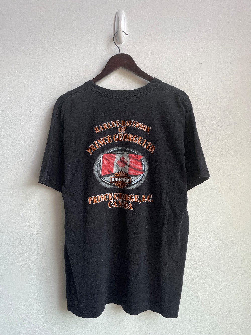 Authentic Harley Davidson Shirt with front and back graphic design from Prince George, BC.