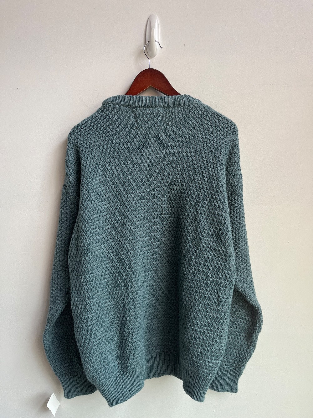 Mens sizing! A thick wool knit sweater with thick ribbed cuffs. Material has lots of stretch
