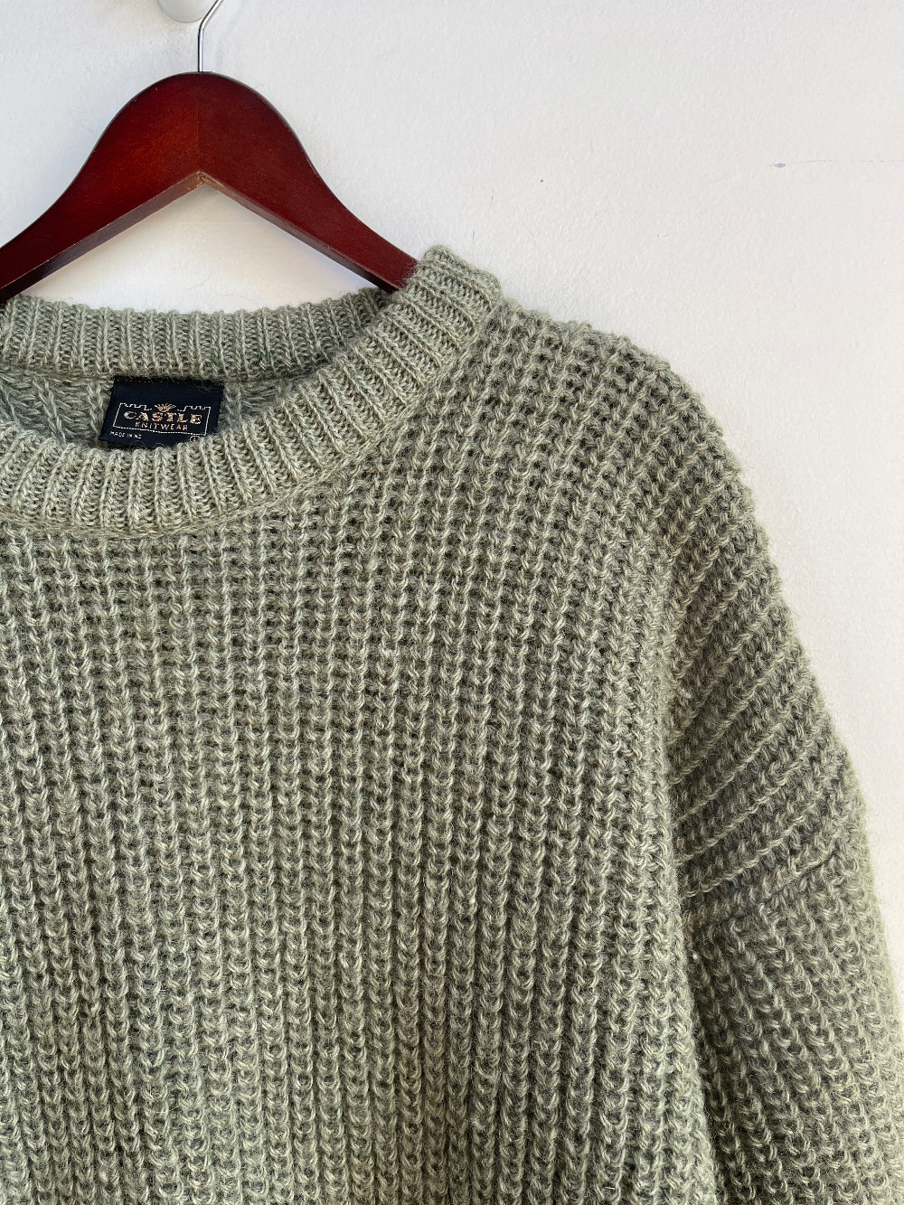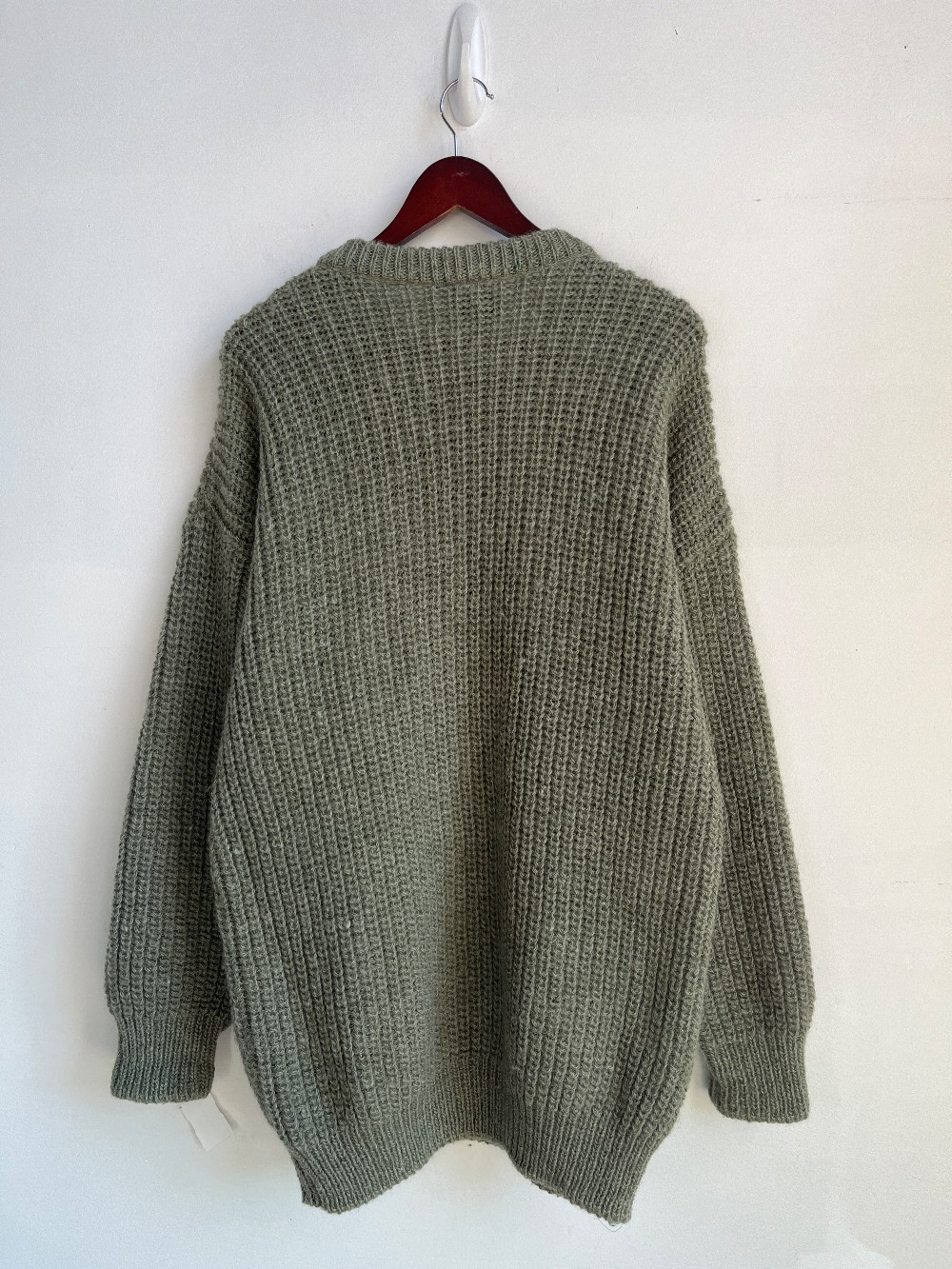Mens sizing! A thick sweater with ribbed trim, a relaxed fit and is knitted with 100% new wool.