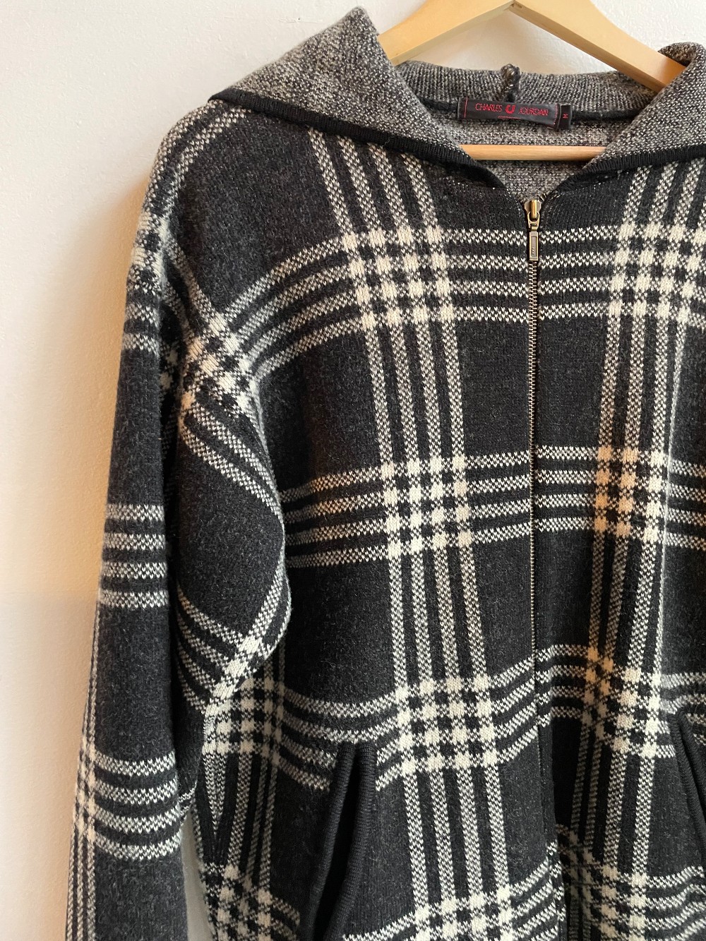 Men’s sizing! A warm 100% wool hoodie with a zip down front. A wonderful vintage piece in pristine condition. Features two pockets.