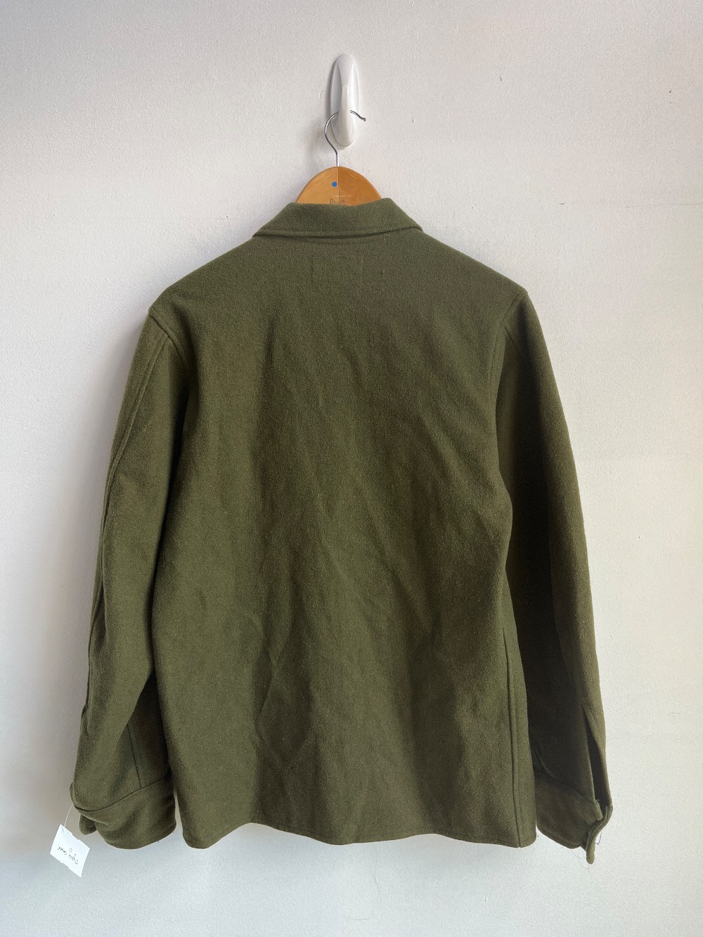 Men’s sizing! AS IS: slightly shrunk. Features two chest pockets, point collar, and a button down front. Made of warm wool and nylon.