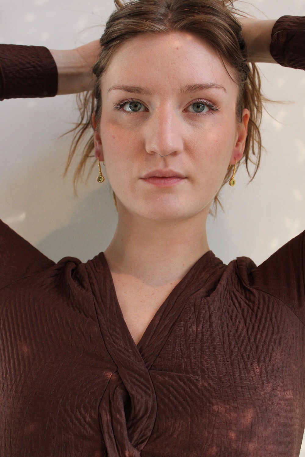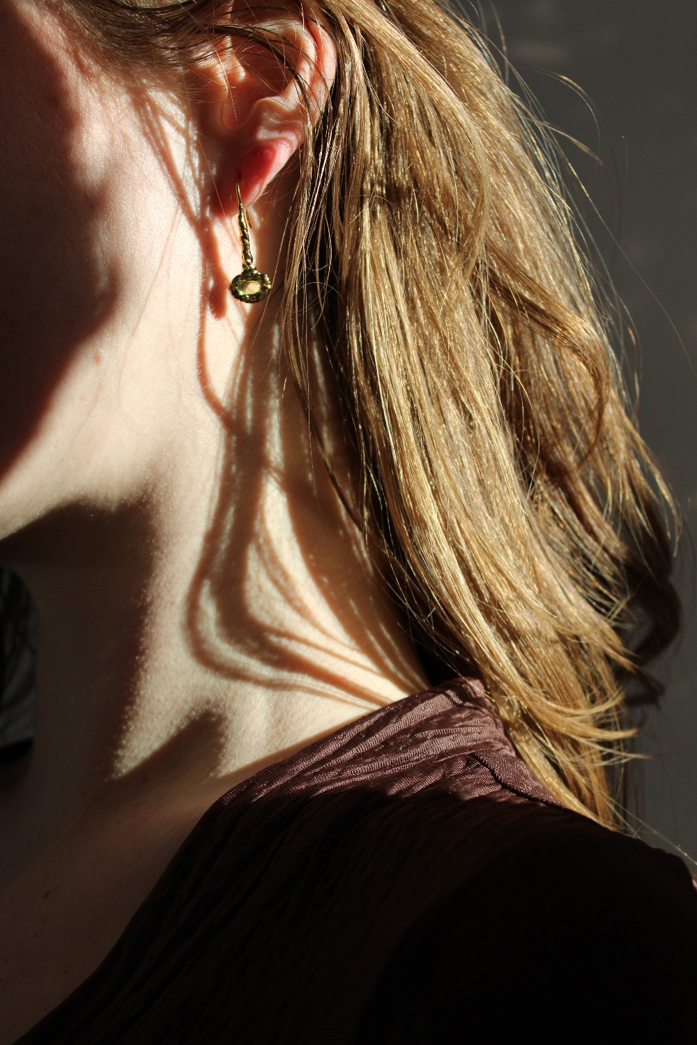 Twisted texture drop earrings with genuine green Peridot gemstones 14k Gold plated recycled brass 14k Gold plated hypoallergenic posts. https://www.wolfcircus.com/products/georgia-earrings-in-gold?_pos=7&_sid=1bc4c7947&_ss=r