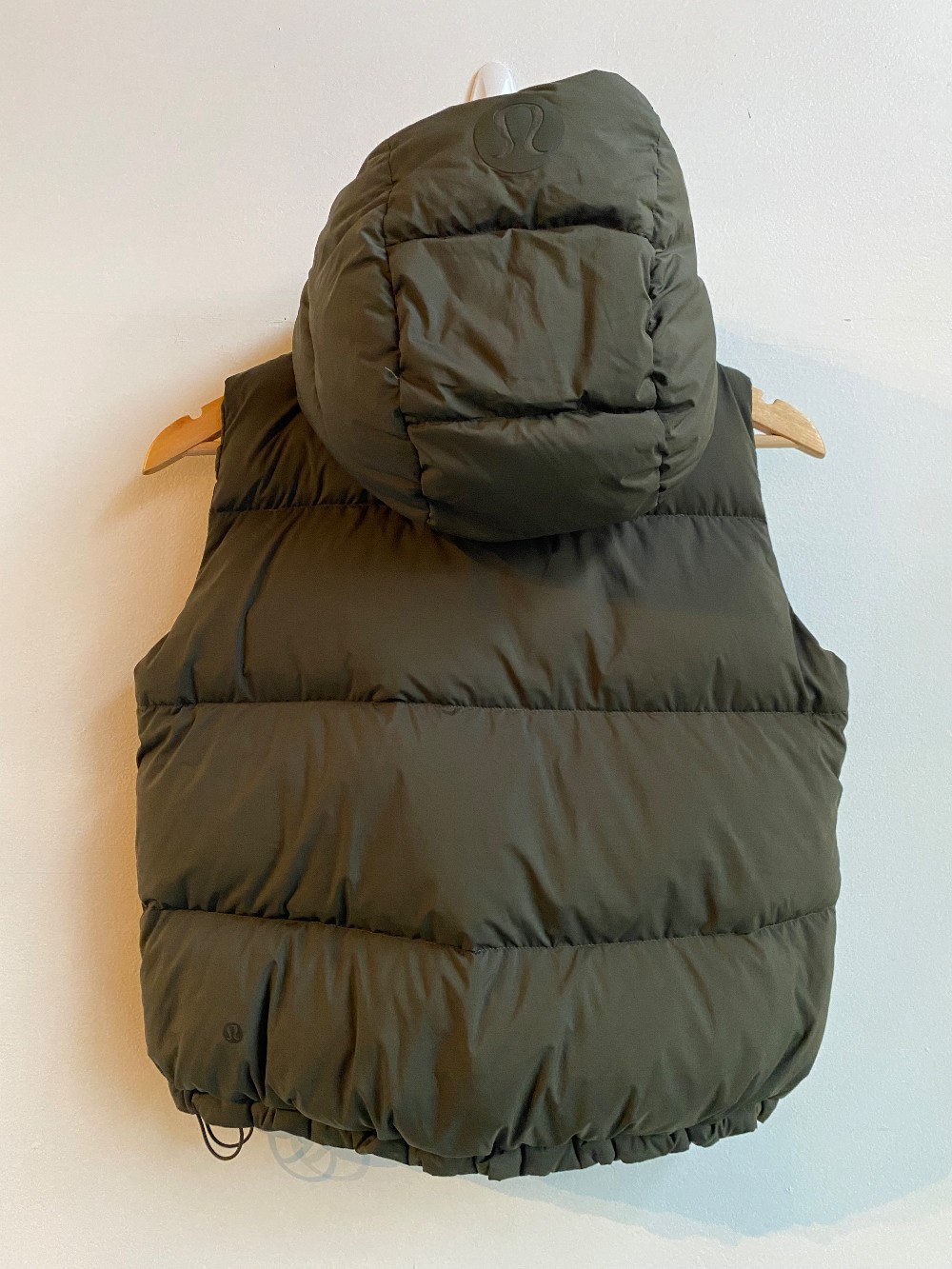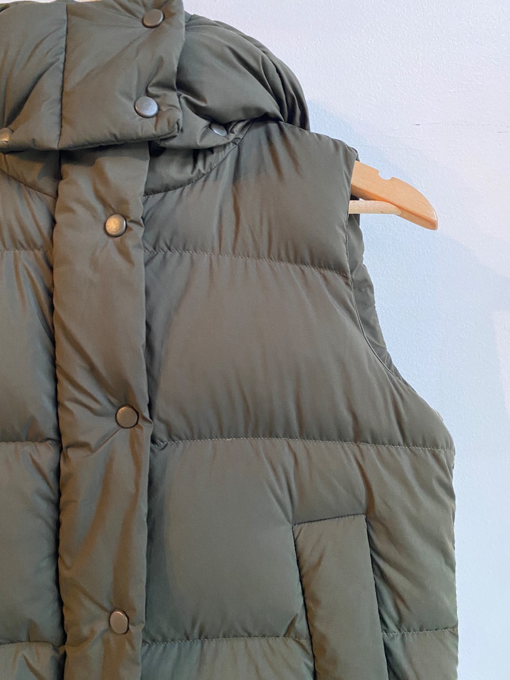 “This wonderfully warm down puffer vest has a cinchable hem that lets you customize the shape and keep out cold drafts. water-repellent, softmatte™ fabric Water-repellent Windproof 600-fill-power goose down insulates through extra loft 100% of our down is certified to the Responsible Down Standard (RDS) by Control Union (No. 847515) This product contains recycled polyester made from repurposed plastic waste relaxed fit, cropped length Relaxed fit feels roomy and can be worn over larger layers. Size down if you prefer a slimmer fit features Removable hood Cinchable hem Zippered exterior pockets with a hidden phone sleeve Interior pockets hold the essentials.”