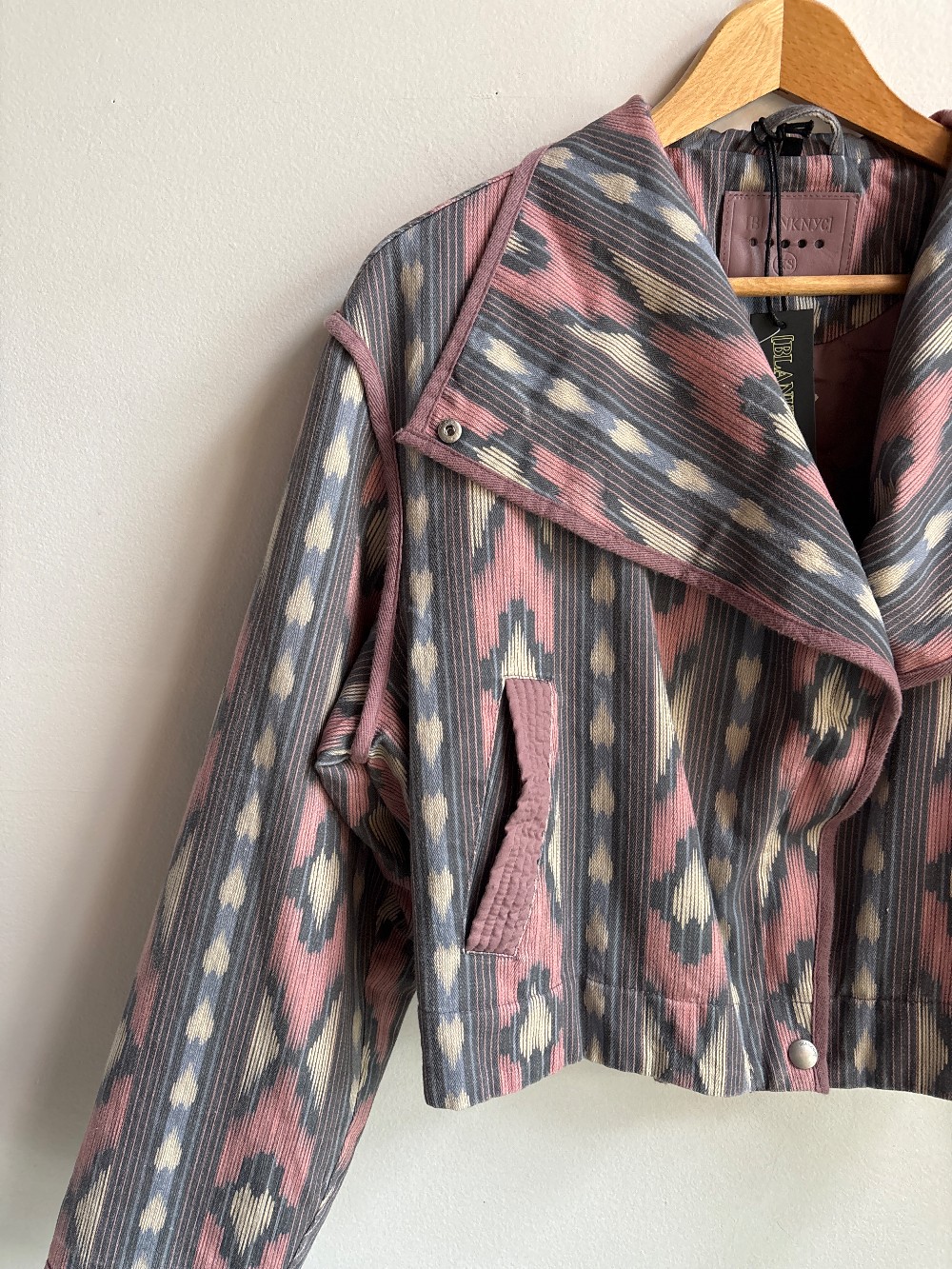 New with tags! Thick slightly cropped jacket with a high neck, asymmetrical zip front and side pockets.