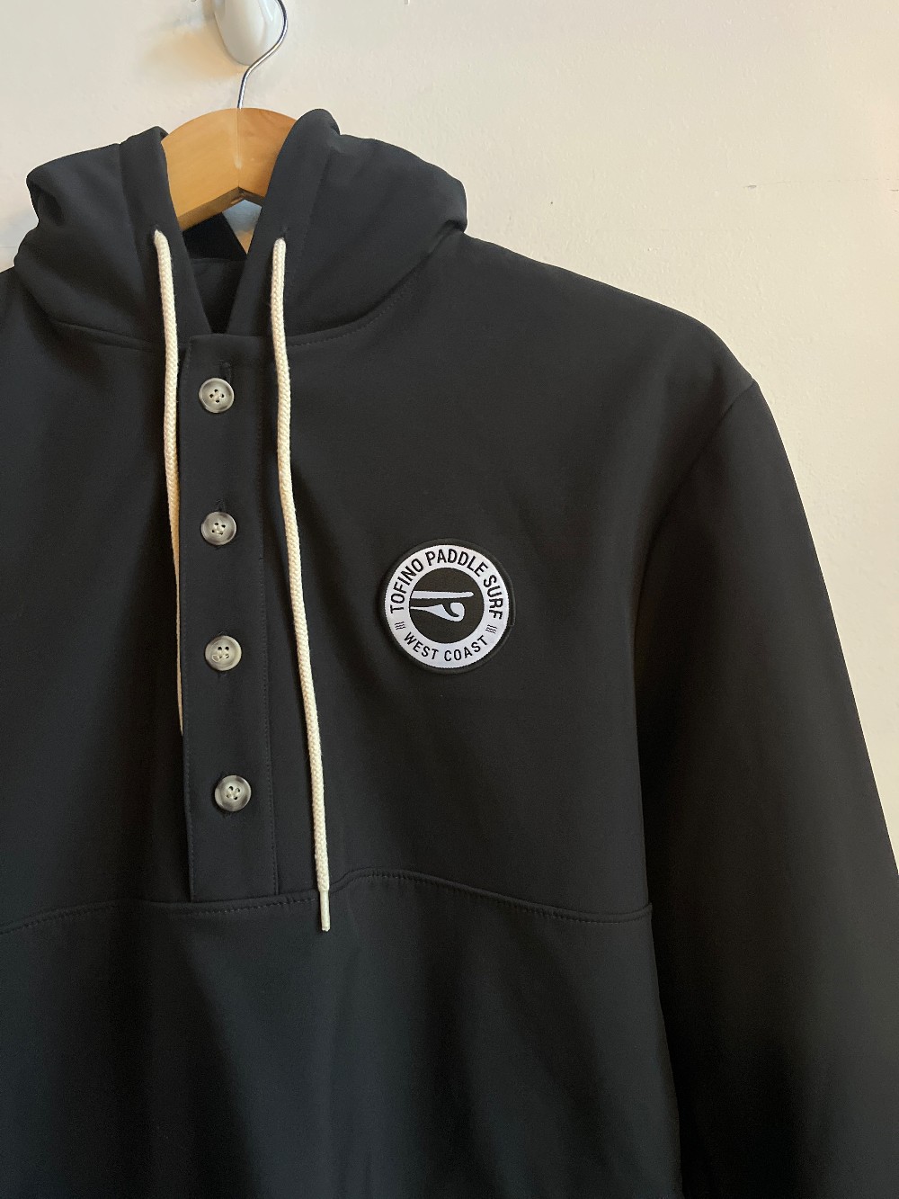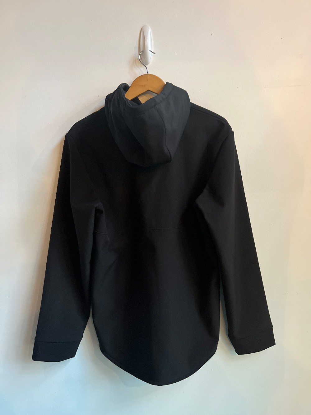 “Doubling as both a sweater and a jacket. Regular Sizing Fit - Boxy and fits larger than our classic fitting items. Unisex - good for everyone. Front pockets. Flat locked seams. Natural drawcord hood. Water Resistant. Wind Resistant. Cut and Sewn in Toronto, Canada.”