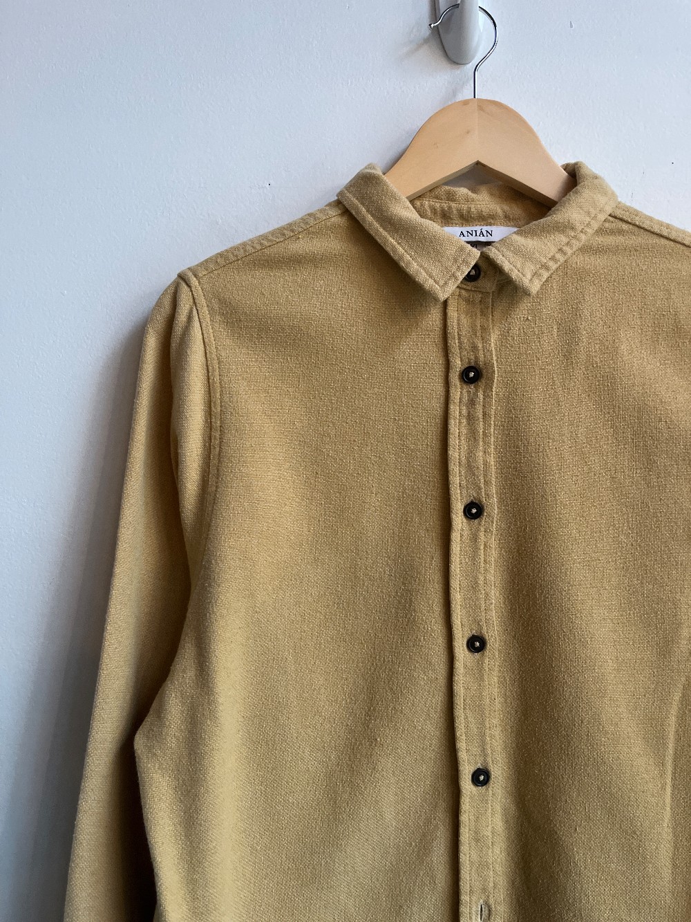 AS IS - Well Loved - Button front 80% Organic cotton shirt with a classic silhouette and curved hemline