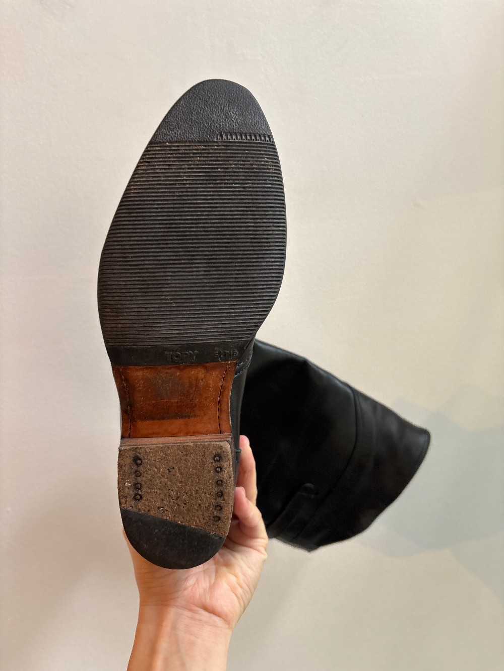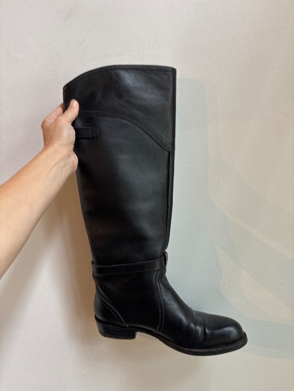 A narrow buckle cinches the topline of this riding boot look for a customized fit. The Frye Company is the oldest continuously operated shoe company in the United States. Founded in 1863 by John A. Frye, a well-to-do shoemaker from England, and family-run until 1945, Frye products have a long and illustrious history. Frye boots were worn by soldiers on both sides of America's Civil War, soldiers in the Spanish-American war, and by Teddy Roosevelt and his Rough Riders