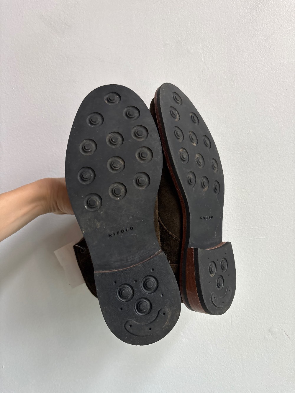 Size 7 womens. Valued at $350! The Go-To Lace Lug Boot features a classic lace-up silhouette with clean, structured lines, crafted from suede leather for versatile, durable wear. Designed for comfort and ease, it includes a cushioned insole, lightweight Extralight EVA outsole for traction, a round toe box, contrast welt stitching.