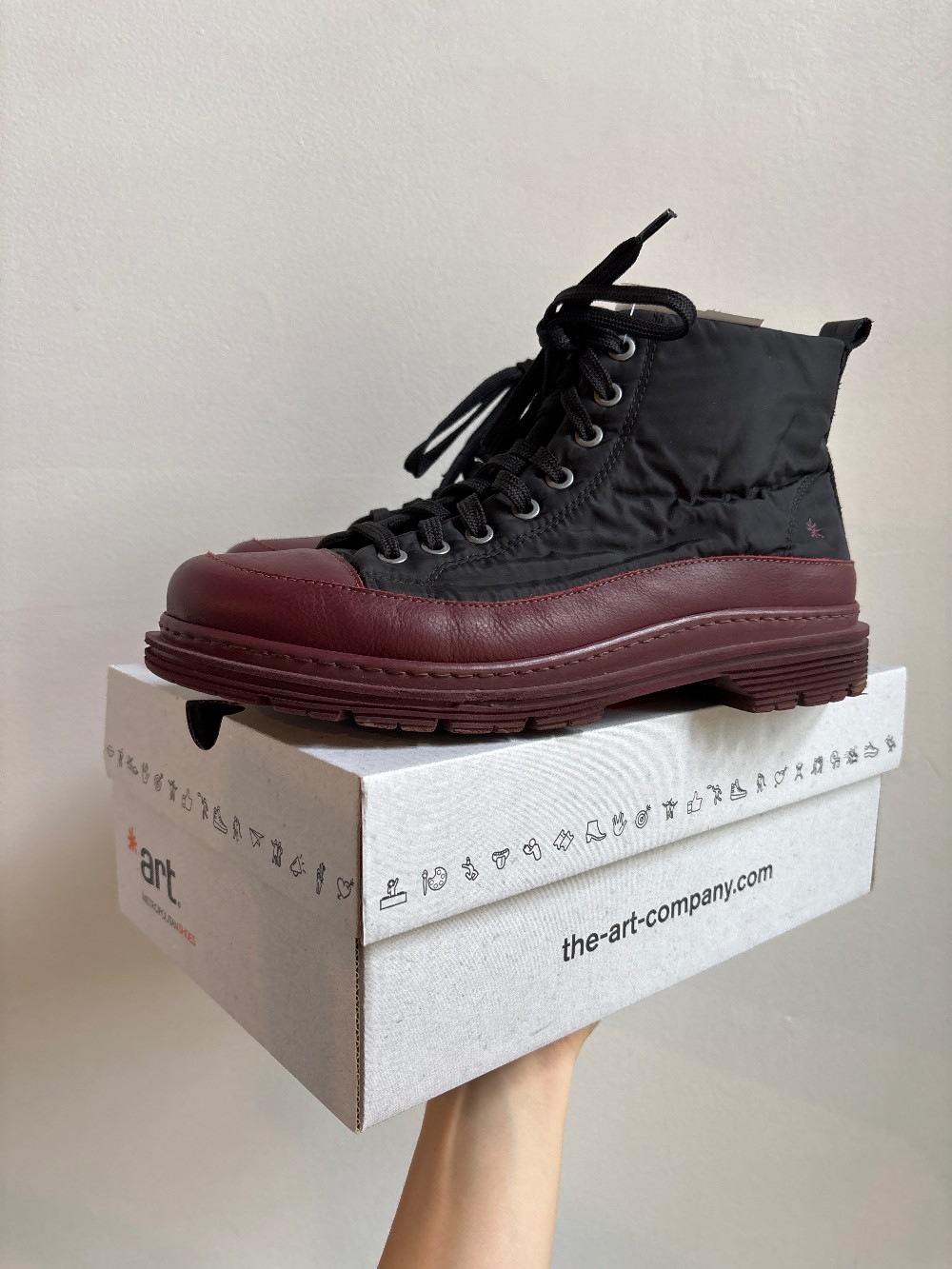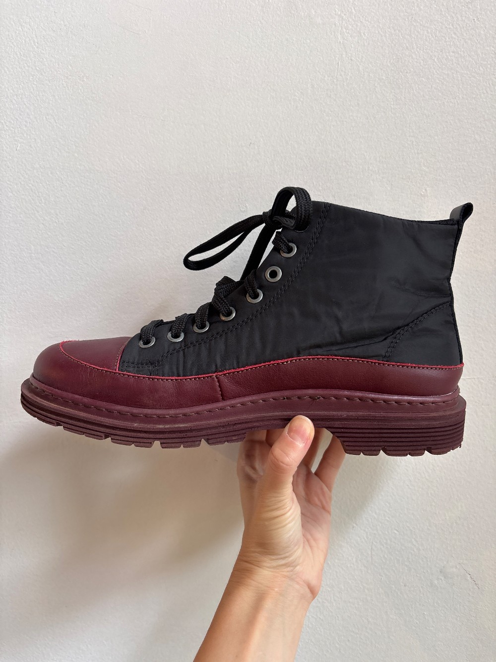 Lightweight Hightop sneakers with a mix of nylon and leather outer.