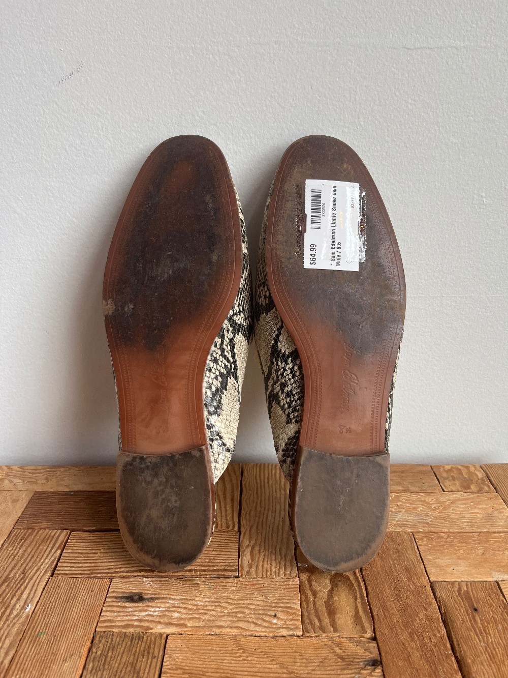 AS IS - Minor wear at back of heel - The Linnie is designed with a horsebit detail and leather sole for that added touch of class and elegance.