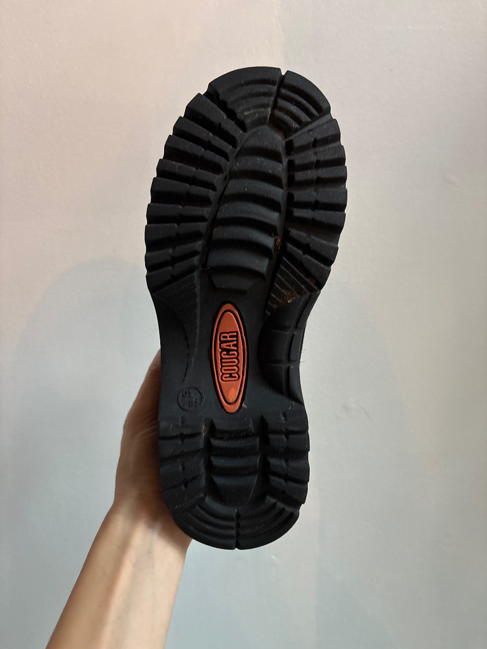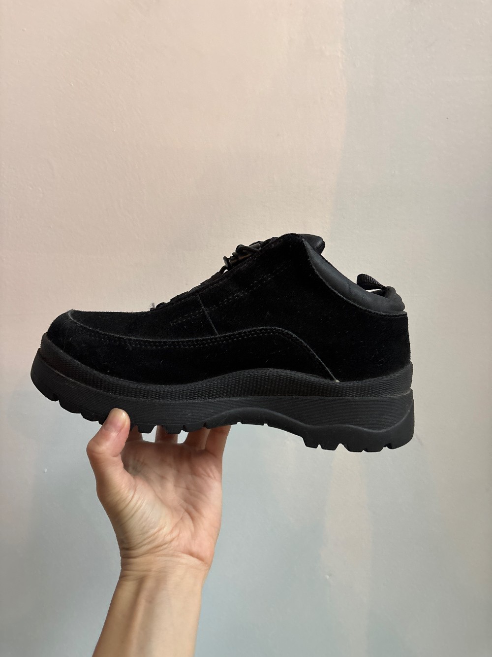 A suede outer material with a lace drawstring pull front. Features an approx 1.5 inch platform sole.
