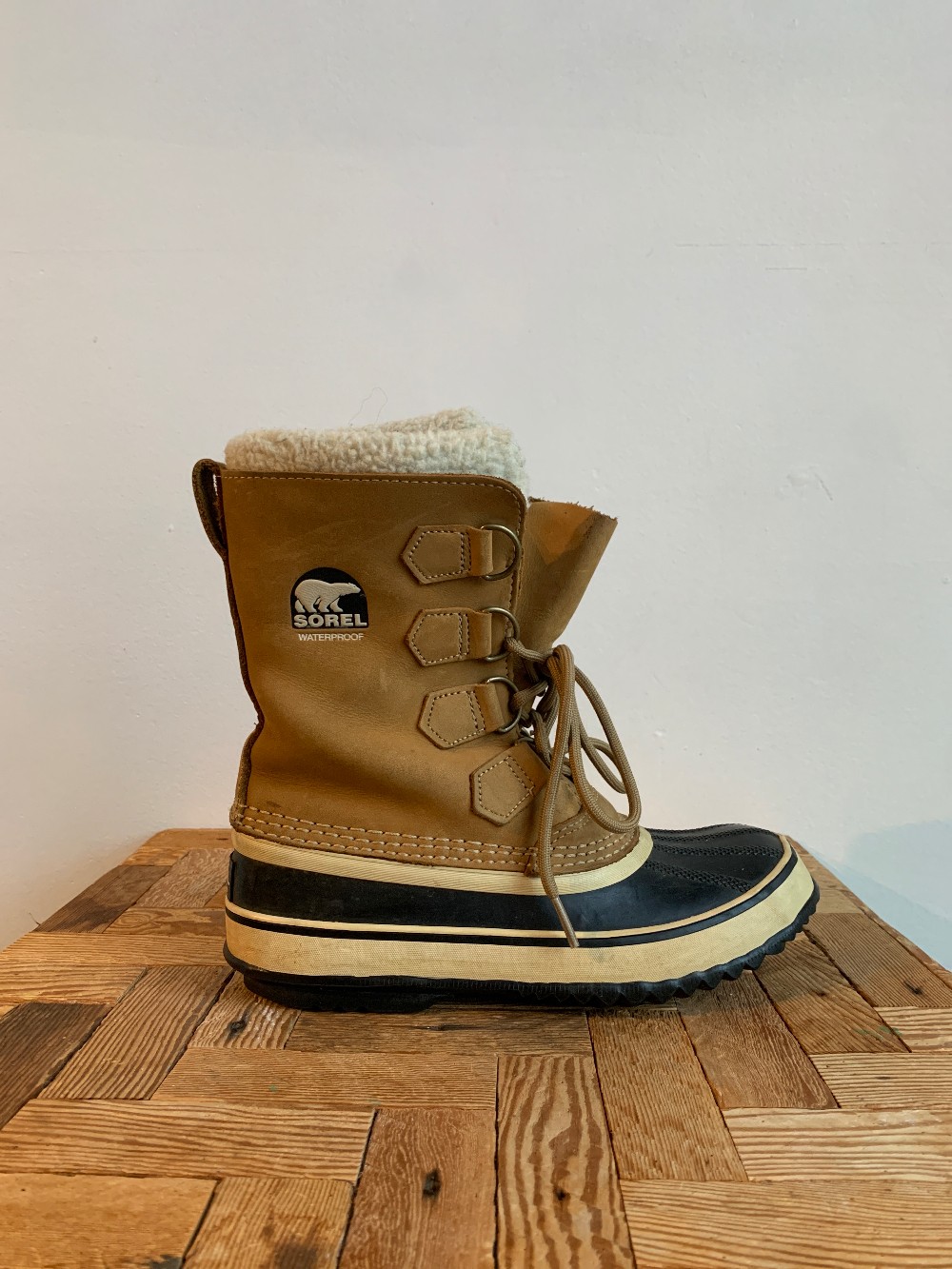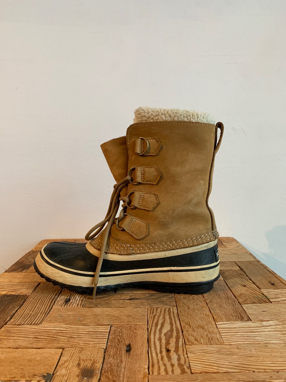 “Comfortable waterproof caribou boots with seam-sealed construction, suede, and ballistic nylon upper. Iconic lug design for traction. Synthetic insulation.”