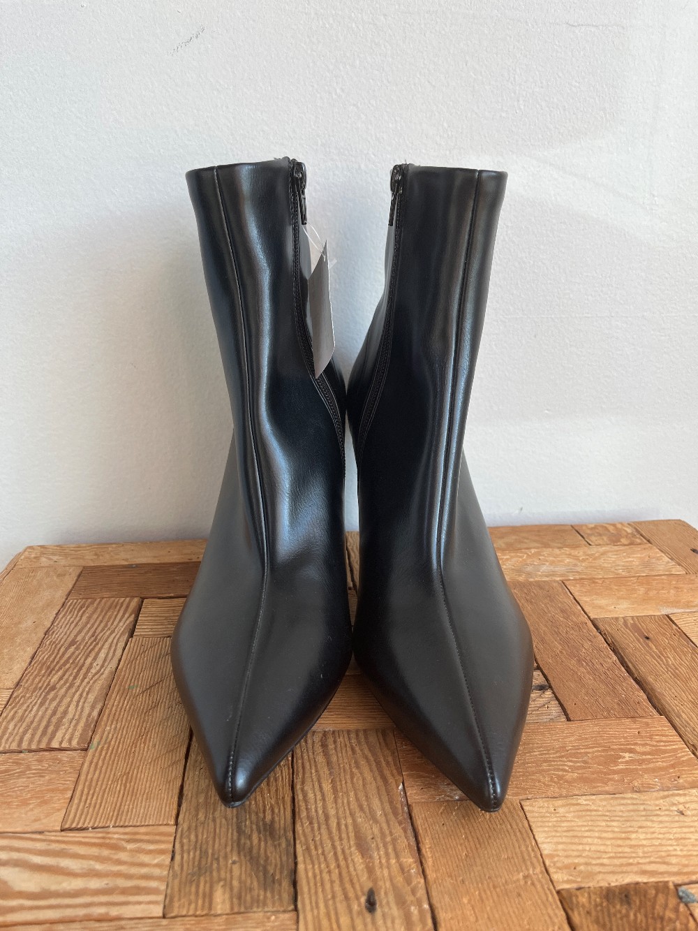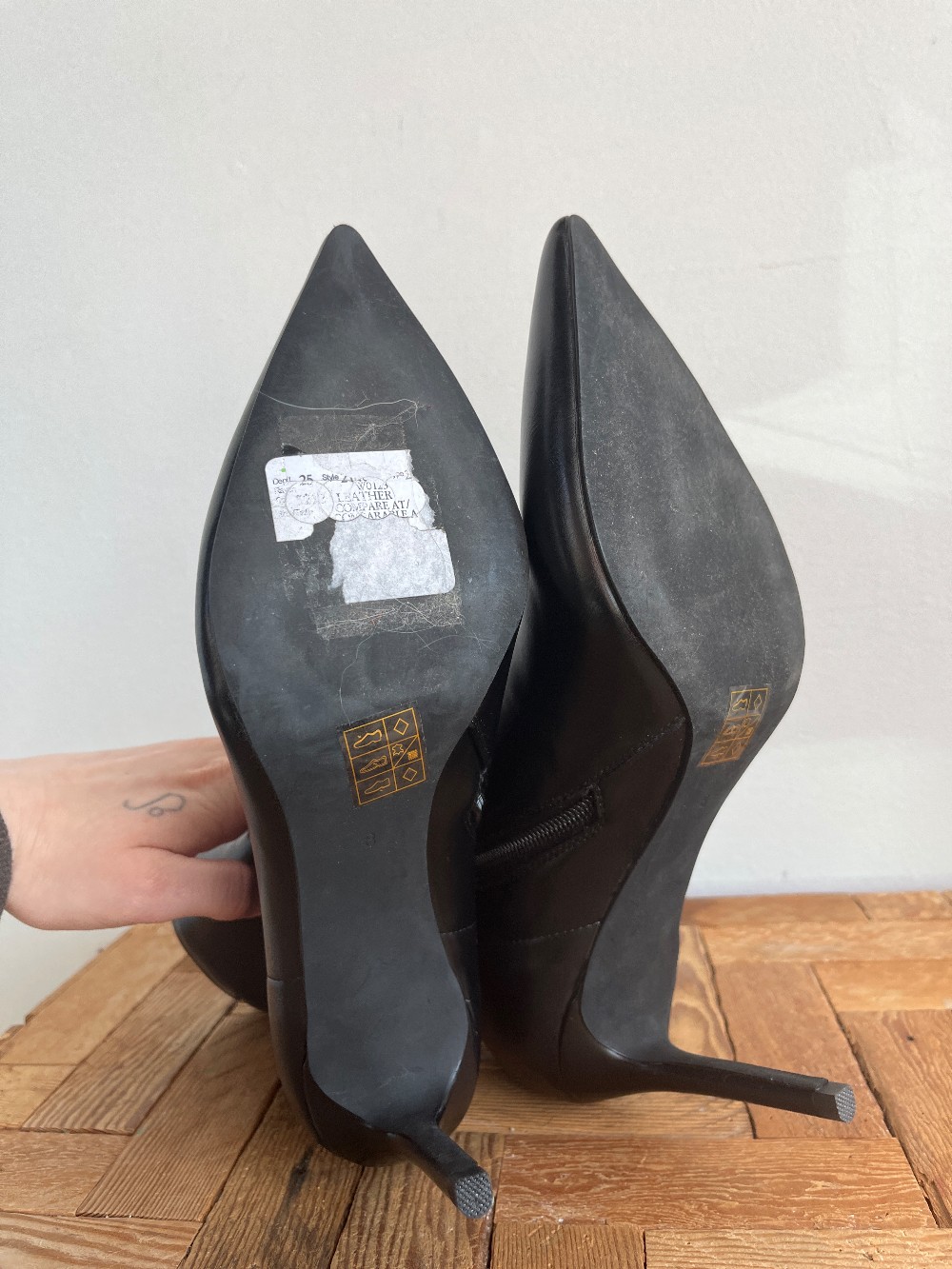 New condition! A cute sleek pair of leather boots. Stretch ankle stiletto with elongated pointed toe.