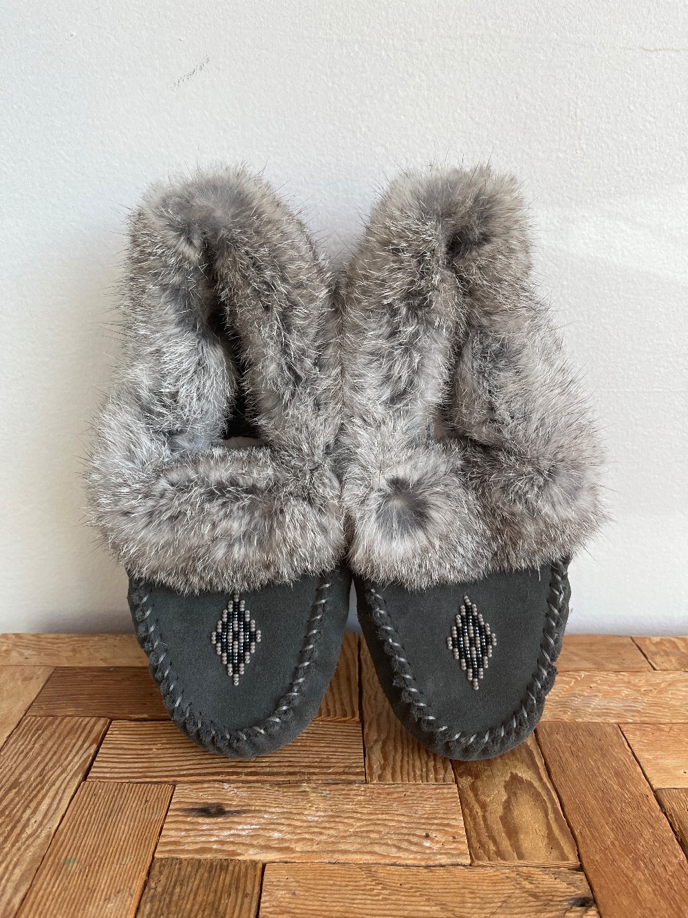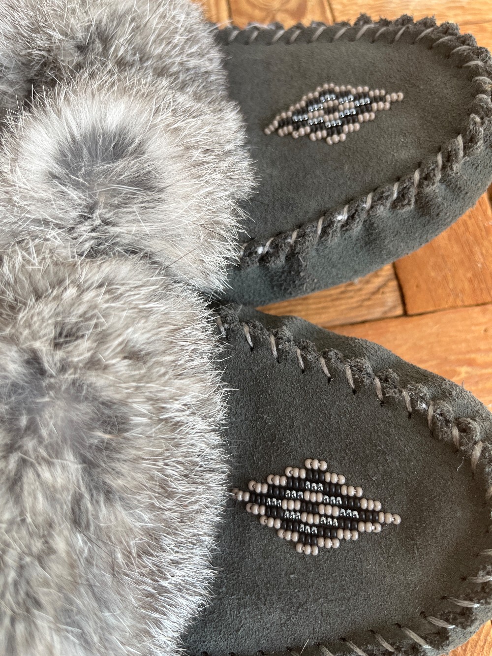 “ Whether you're running around town or hanging out at home, The Street Moc makes every journey a cozy stroll. With its fur ankle cuff, beaded vamp, soft suede outer, fleece-lined footbed, and Turtle sole, it's a go-anywhere moccasin that honours traditional design while delivering modern durability.”