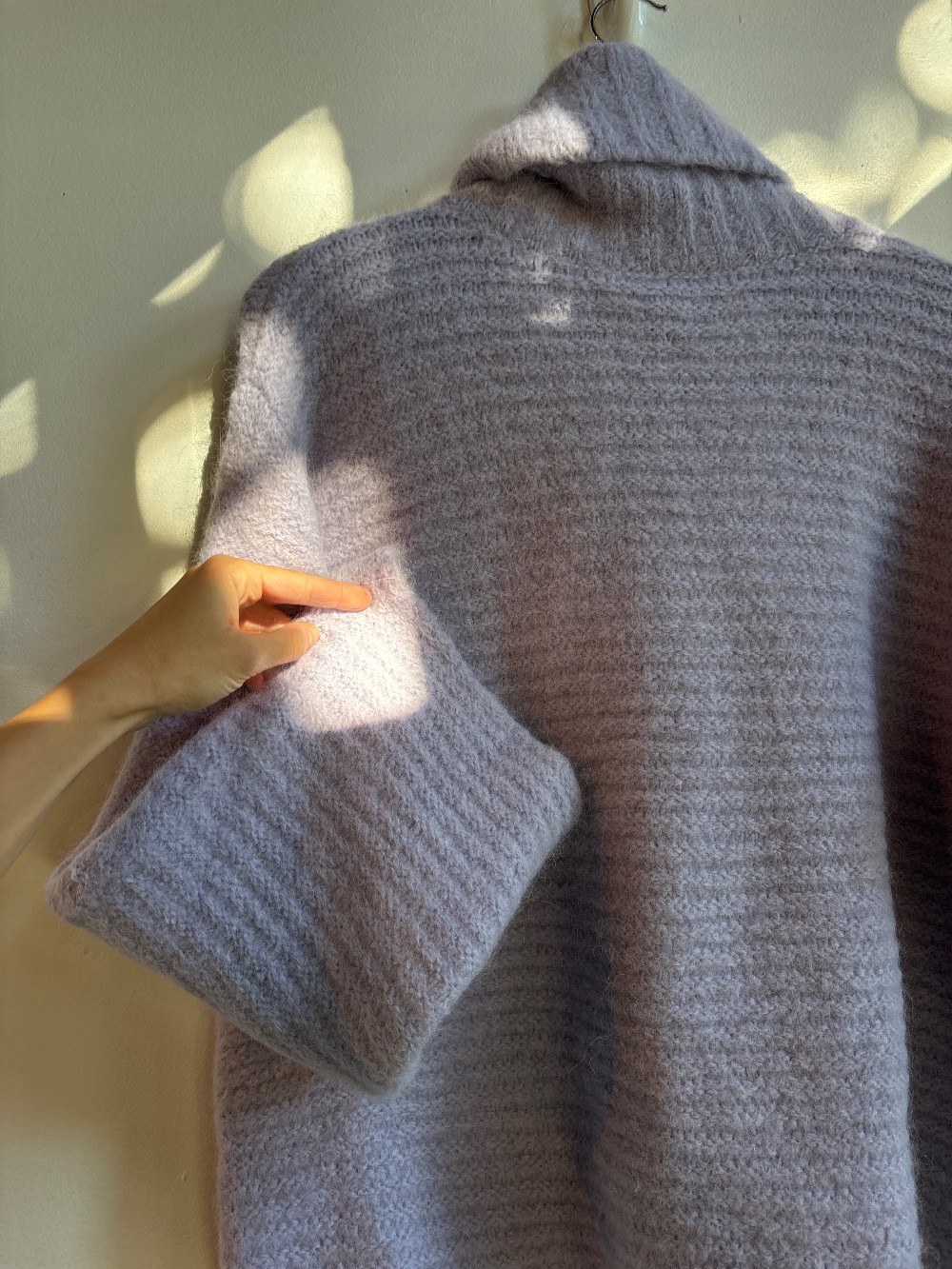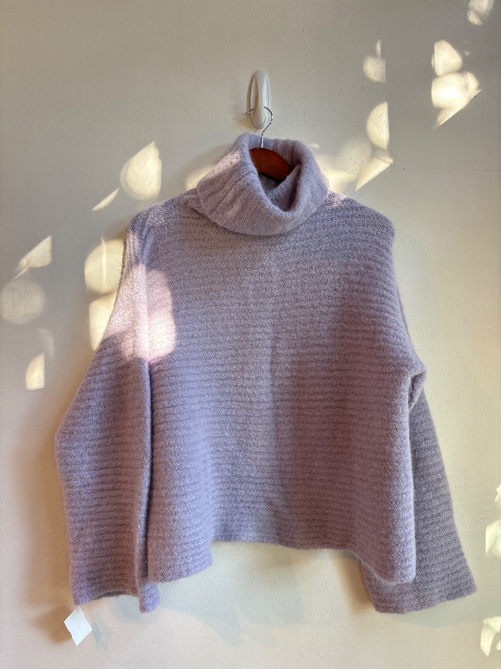 Luxury knit blend turtle neck sweater with a boxy fit and oversized rolled turtle neckline.