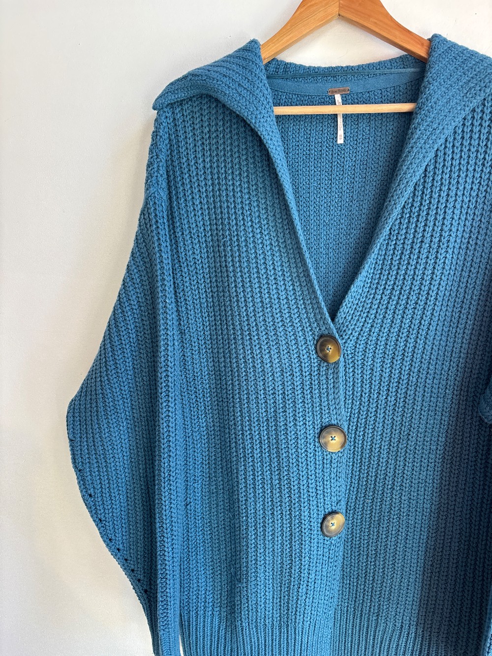 Fold over neckline, full sleeves, button turtle shell front, no inner lining