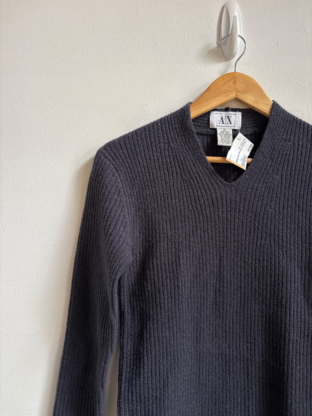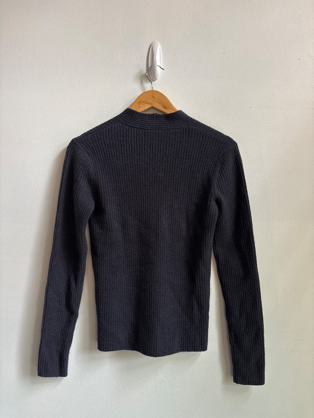 Super soft wool blend ribbed long sleeve shirt with a V neckline and regular fitting silhouette. Made from a super stretchy knit material.