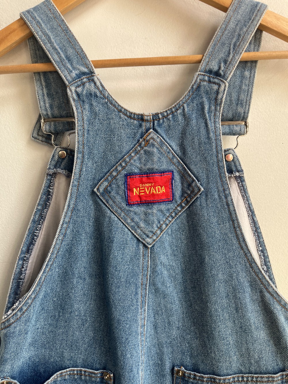 Kids size 12 ( Would fit and XS ) - Adorable short overalls with a classic silhouette, side button closures with a button down chest, front bib pocket and 4 pockets on bottoms with a classic branded patch on back.