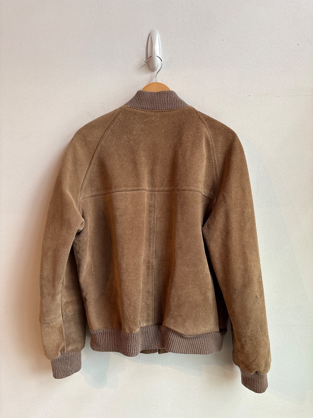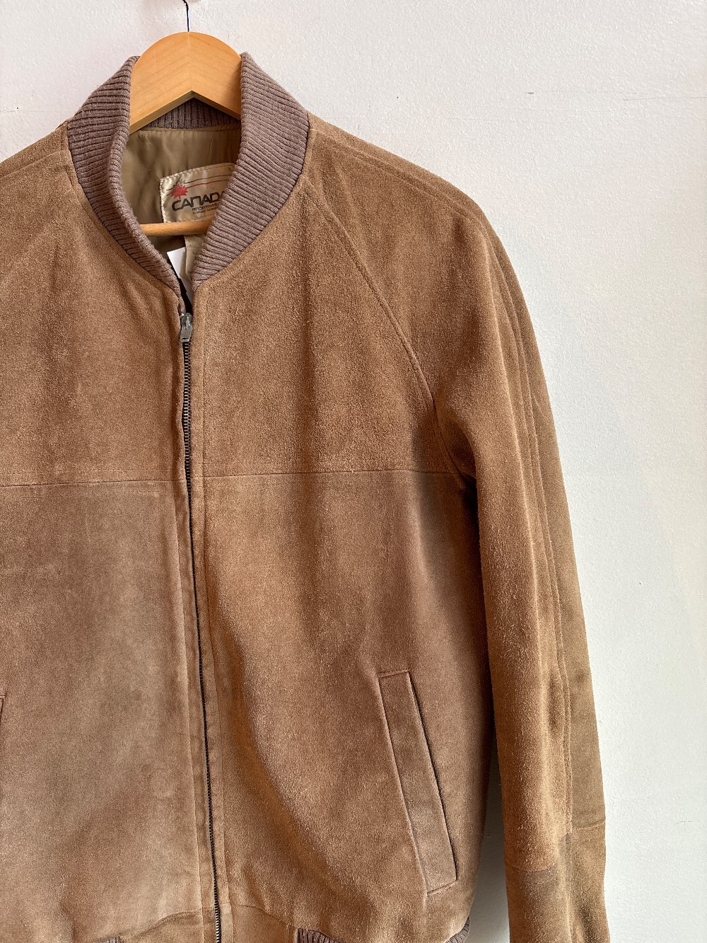 As is : wear on inner lining and some loose threads on trim. Mens sizing! A classic vintage bomber jacket with a zip up front, relaxed fit, side pockets and inner lining. Outer is heavy suede