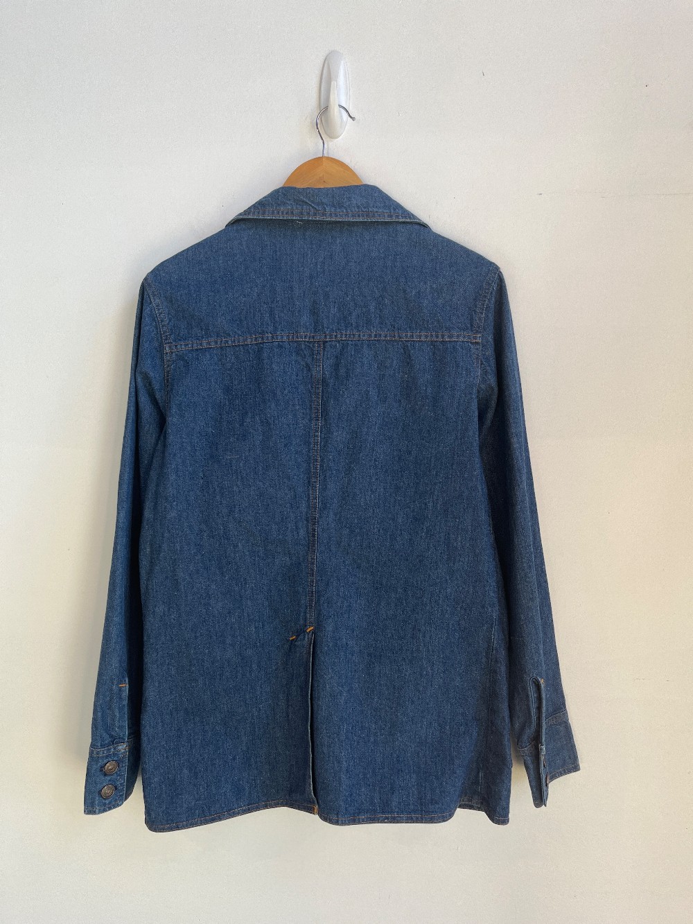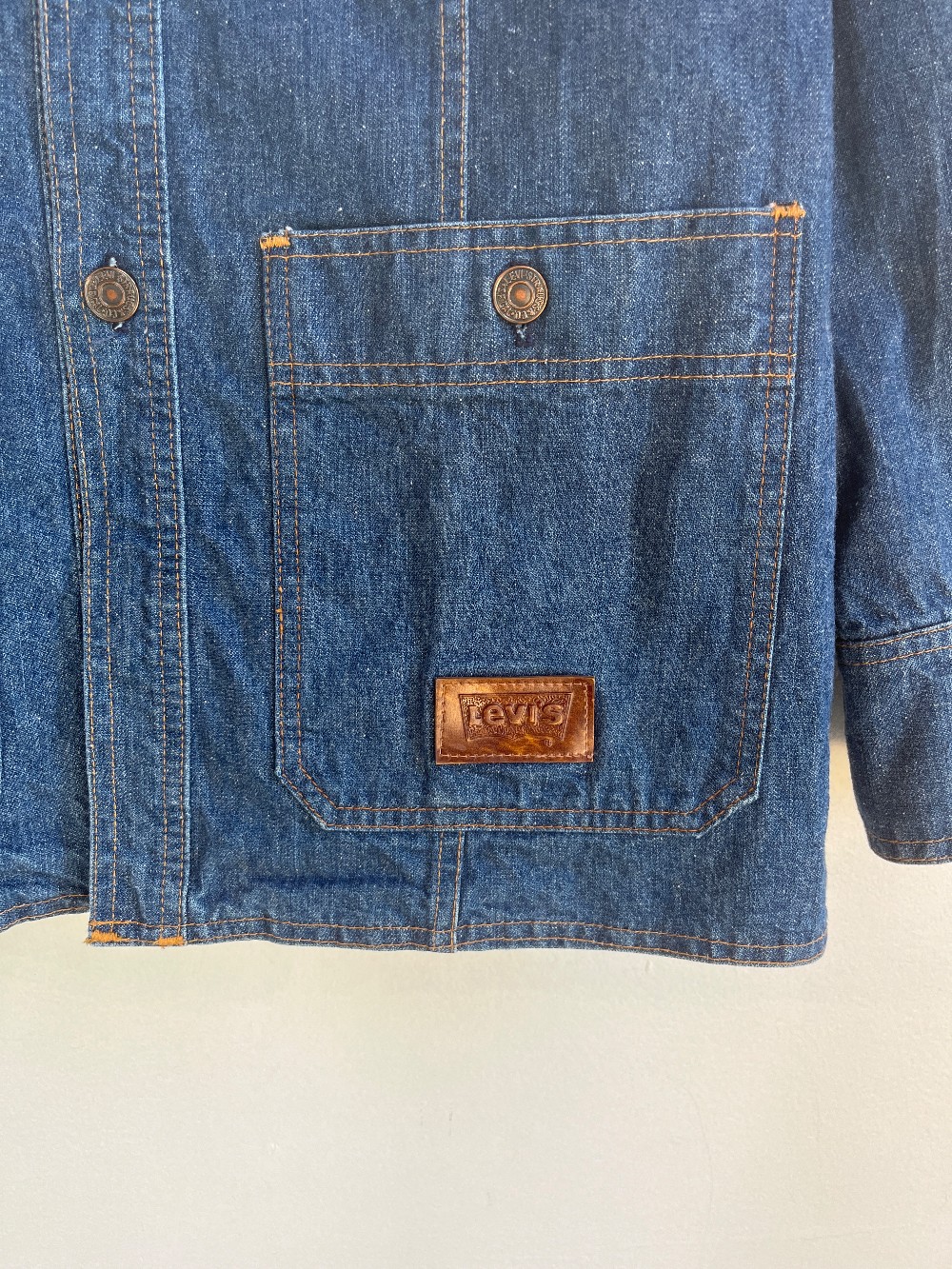 This denim piece is a unique vintage find! The Levis Safari chore coat features four button closure pockets and buttons up the front of it and an oversized collar. It is in great condition. sizing in Mens.